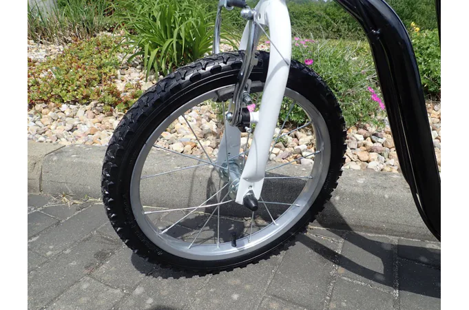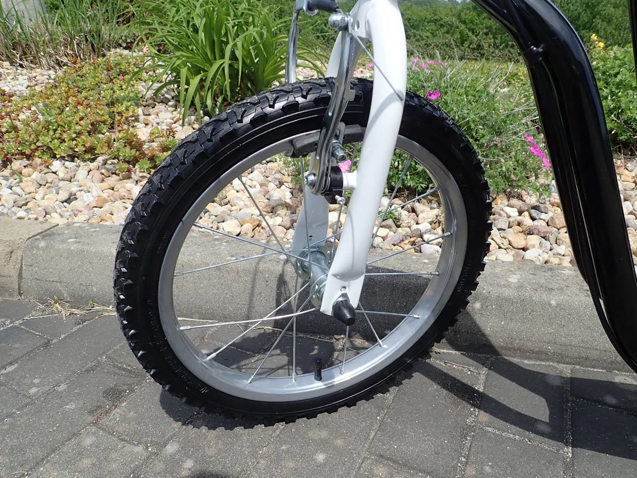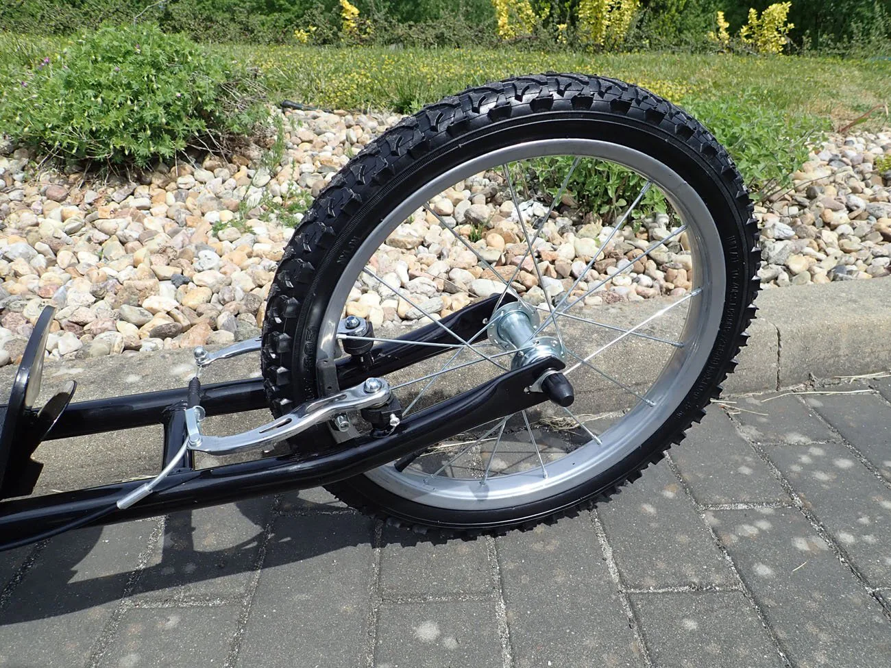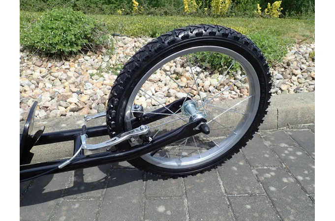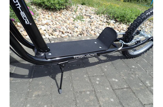 Koloběžka pro děti i dospělé ACRA Brother Tornado 16/16" černá CSK25. Doporučené od 9 let, nosnost 90 kg. Rám Hi-tech vyztužená ocel. Pneumatiky 16" + 16" nafukovací, ráfky - ocelové zušlechtěné, max. doporučený tlak v pneumatikách 2,5 Bar.