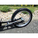 Stupátko 33 cm s protismykovou úpravou, Brzdy 2 × "V" ALU - zadní + přední. Rozměry - d x š x v = 141 x 55 x 94 cm, hmotnost 8,7 kg. Výška řidítek lze nastavit, na 80 - 90 cm (měřeno od země k rukojetím).