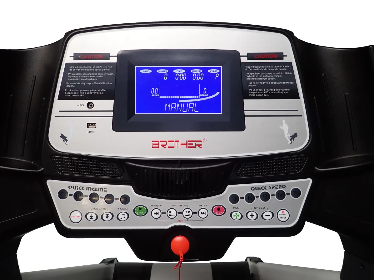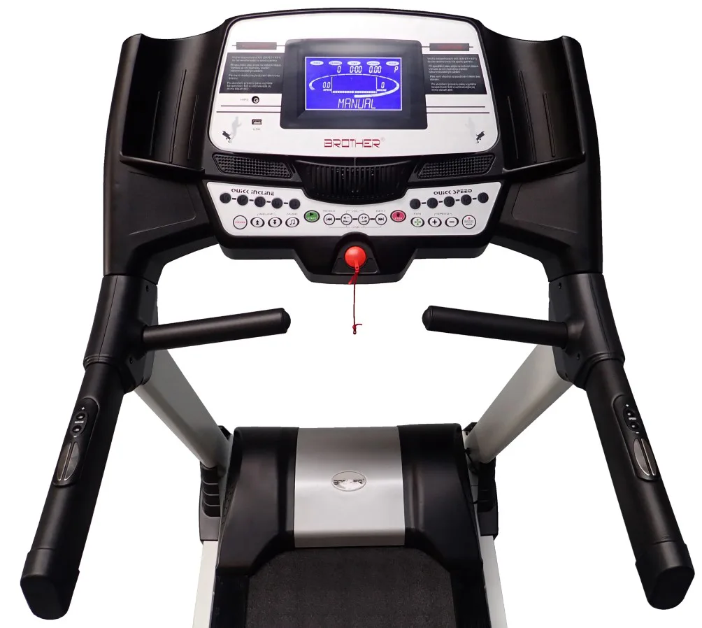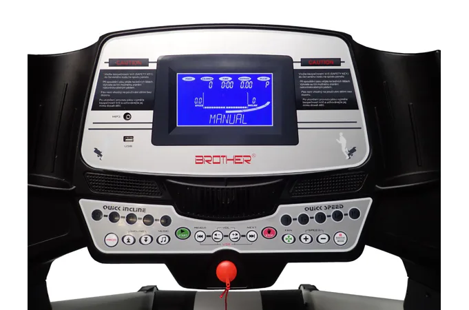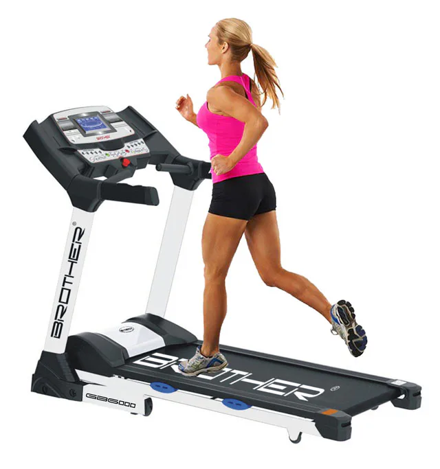 Běžecký pás BROTHER GB6000BA s možností připojení běžeckých aplikací pomocí Bluetooth. V tomto se výrazně odlišuje od jinak konstrukčně shodného stroje GB6000. GB6000 má motor určený pro trvalou zátěž o výkonu 3 - 6 HP, což je 2,25 - 4,5 kW (maximální průtok el. proudu je 8 A) AC střídavý.