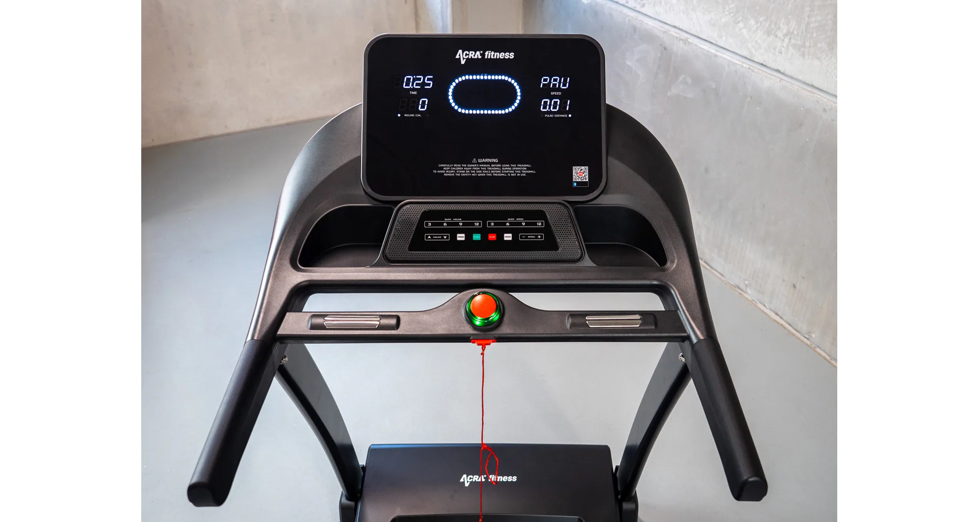 Pás také disponuje bezpečnostní rychlobrzdou, která umožňuje okamžité zastavení v případě potřeby. Sklon pásu lze elektricky nastavit v rozmezí 0-15 % přímo z rukojetí, což umožňuje plynulou změnu během běhu.
