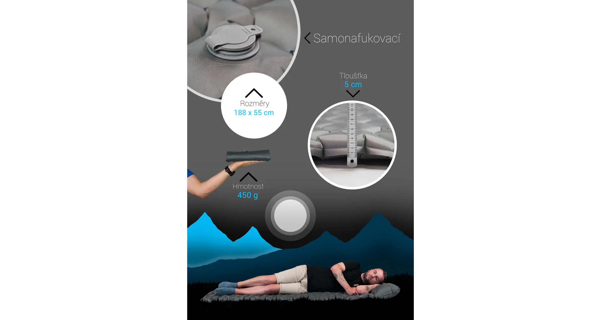 Nafukovací karimatka s nafukovacím polštářkem je velmi úsporný druh karimatky, který je určena pro náročnou turistiku z důvodu skladnosti a nízké hmotnosti.