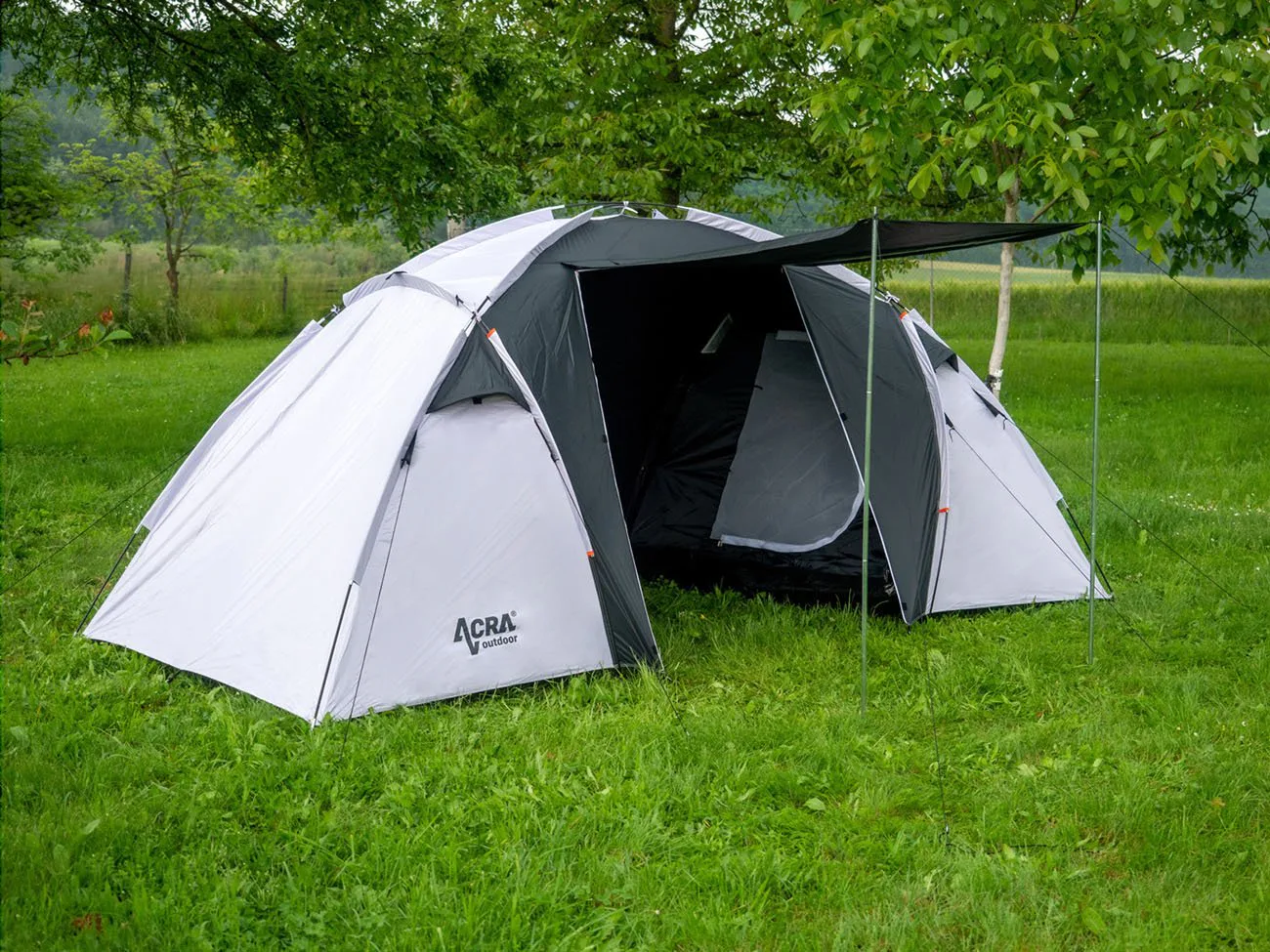 Rodinný stan ACRA ST07 pro 4 osoby se dvěma zatmavenými ložnicemi (pro komfortní spaní při denním světle) pro 4 osoby. Rodinný stan je velmi vhodný pro příležitostné kempování. Předsíňka spolu se slunečním přístřeškem vytvářejí dostatek vnitřního prostoru i v případě nepříznivého počasí. I při své velikosti je velmi skladný a s pomocí laminátových prutů postavení nezabere víc než 15 minut. Vhodný pro 4 osoby. Součástí výbavy jsou ocelové kolíky a upínací šňůry.