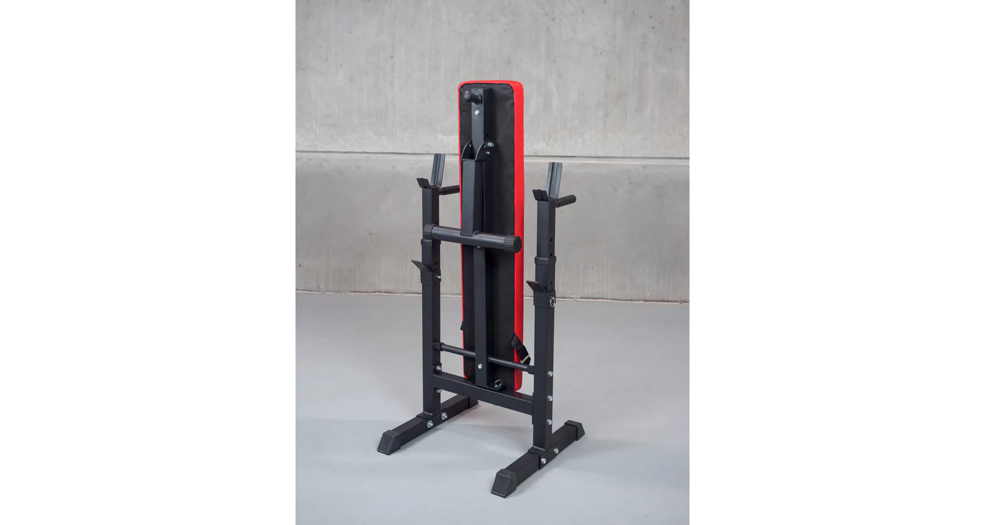Posilovací lavice má stabilní trojúhelníkovou konstrukci v kombinaci se silnými materiály, které zajišťují vaši bezpečnost během cvičení. Dále je doplněna 2 podpěrami na činky. Polstrovaný povrch lavice zabezpečuje komfort.