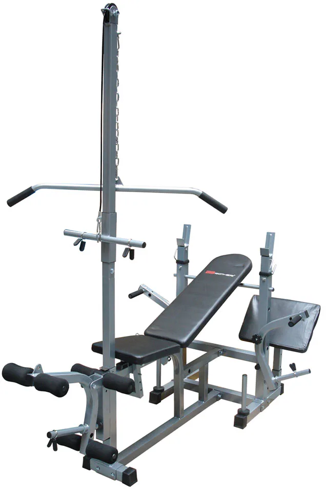 Stojany na dvouruční činku lze nastavit v rozmezí 104 - 125 cm od země. Na posilování stehen a lýtek je určena otočná kladka, která umožňuje procvičení a posilování (předkopávání a zakopávání). Na stojanu s kladkou je možné také cvičit mnoho variant nejrůznějších cviků.