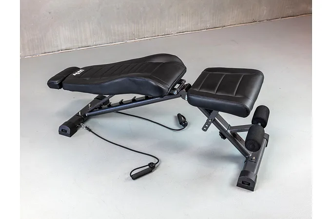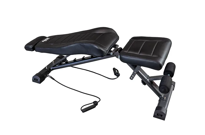 Díky nastavitelné zádové opěrce do 8 úrovní a nastavitelnému sedáku do 4 úrovní bude variabilita vašeho tréninku obohacena o další možnosti. Na lavici odcvičíte například prsní svaly, deltové svaly (ramena) a břicho. Pro lepší zapojení břišních svalů lze zádovou opěrku nastavit i do negativního sklonu. Pro větší stabilitu obsahuje lavice opěrku na nohy, kterou lze nastavit do 3 pozic. Lavice má u zadních nohou oka na přidělání expandéru, díky kterým lze odcvičit celý trénink!