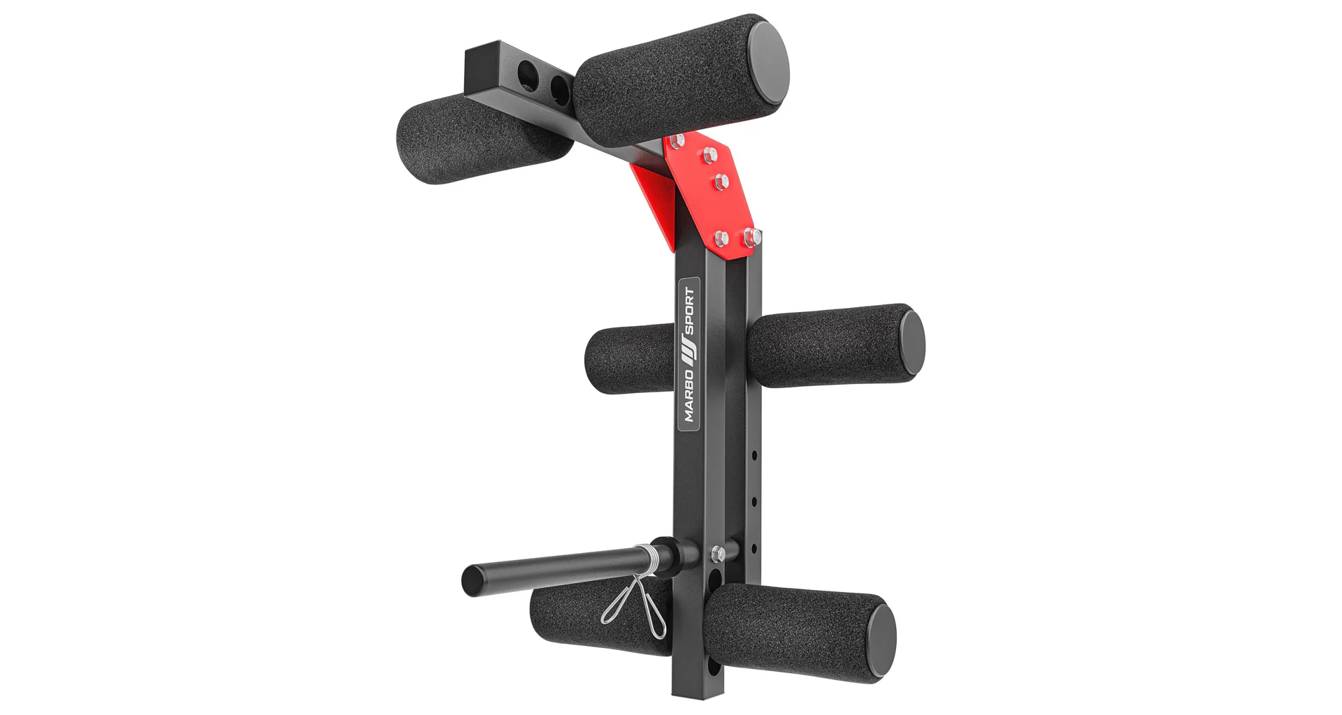 Adaptér na předkopávání MARBO MH-A102 2.0 je určen k použití s lavicemi ze série MARBO Home. Adaptér se používá k posilování svalů dolních končetin, v sedě se předkopává, v leže se zakopává. Adaptér má 3 polohy pro nastavení výšky a každá z tyčí, ne které jsou navléknuty pěnové válce je možné nastavit do 3 poloh, adaptér si tak můžete dokonale přizpůsobit svým potřebám. Trn na závaží má délku 25 cm a průměr 25 mm a můžete na něj naložit jak běžné, tak olympijské kotouče. Závaží je jištěno pružinovou svorkou. Konstrukce je vyrobena z ocelového profilu 40 x 40 mm, díky kterému má nosnost až 120 kilogramů. Jednotlivé díly jsou vyrobeny na precizních, programovatelných CNC strojích, tento výrobní proces je zárukou bezproblémové montáže.