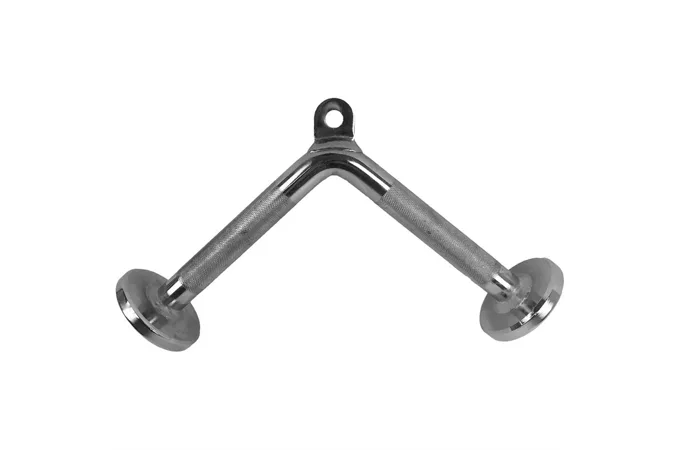 TUNTURI adaptér triceps V-tvar je rozšiřujícím doplňkem pro všechny kladkové posilovací stroje. Konstrukce je vyrobena z odolné oceli, což zaručuje dlouholetou životnost. Rukojeti jsou opatřeny chromovaným rádlovaným materiálem, který napomáhá pevnému a komfortnímu stisknutí. Ergonomický tvar V umožňuje plný rozsah pohybu během procvičování bicepsů či tricepsů. Tento tvar umožňuje také procvičovat ty svalové partie, které klasický úchop nezahrnuje a posilovací stroj tak získá nový směr.