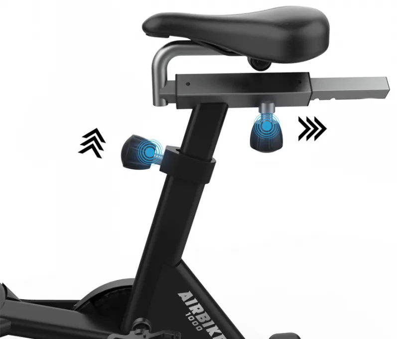 Trenažér Air Bike XEBEX Air Bike 1000 má kvalitní ergonomicky tvarované sedlo, které je nastavitelné v horizontálním i vertikálním směru. Pohyblivá madla rukou jsou spojena s pedály a přináší tím zapojení horní i spodní části těla.