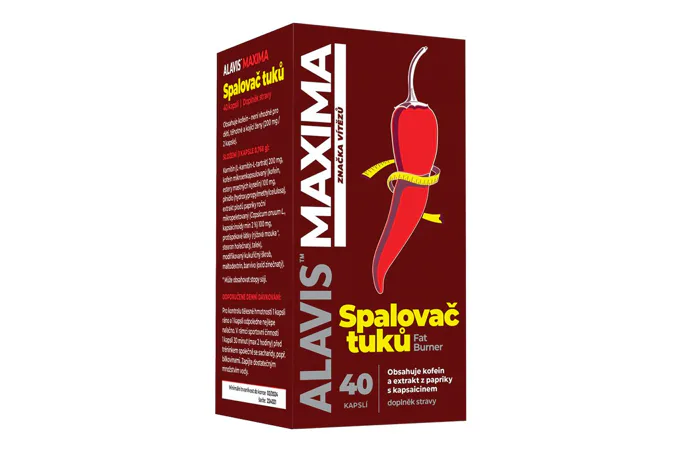 ALAVIS™ MAXIMA Spalovač tuků obsahuje koncentrovaný extrakt z přirozeně se vyskytujících sloučenin přítomných v plodech papriky roční (Capsicum anuum L.) standardizovaný na obsah kapsaicinoidů min. 2%. Je vyráběný jedinečnou technologií zapouzdření (mikropeletace), která umožňuje postupné a dostatečné uvolňování účinné látky bez žaludečních potíží. Má jedinečnou schopnost vytvářet teplo v těle a tím pomáhá zvýšit rychlost metabolismu jak sacharidů, tak lipidů. Současně potlačuje chuť k jídlu, čím přispívá ke snížení přijmu kalorii a kontrole tělesné hmotnosti.