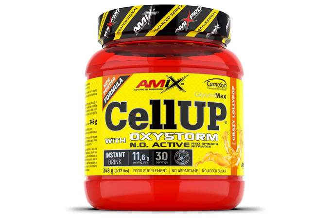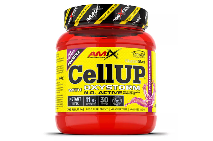 AmixTM CellUp® with Oxystorm® je unikátní super koncentrovaný předtréninkový doplněk v práškové formě pro přípravu osvěžujícího a chutného nápoje. Vitamíny C a B6 přispívají ke snížení únavy a vyčerpání, zatímco kofein přispívá ke zvýšení odolnosti, pomáhá zlepšit koncentraci a bdělost. Složení Amix CellUP tvoří zkrátka perfektní kombinaci pro maximální napumpování a nakopnutí před tréninkem.