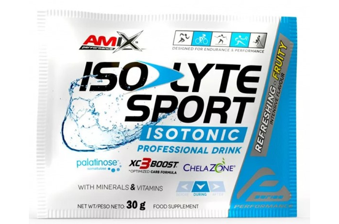 Amix Isolyte je instantní prášek pro přípravu osvěžujícího iontového nápoje s obsahem sacharidů, minerálů a vitamínů. Iontový nápoj připravený z tohoto koncentrátu přispívá k udržení výkonnosti při delším vytrvalostním fyzickém výkonu. Zvyšuje vstřebávání vody během fyzického výkonu.