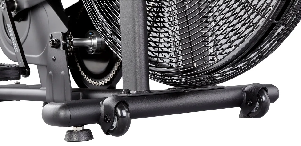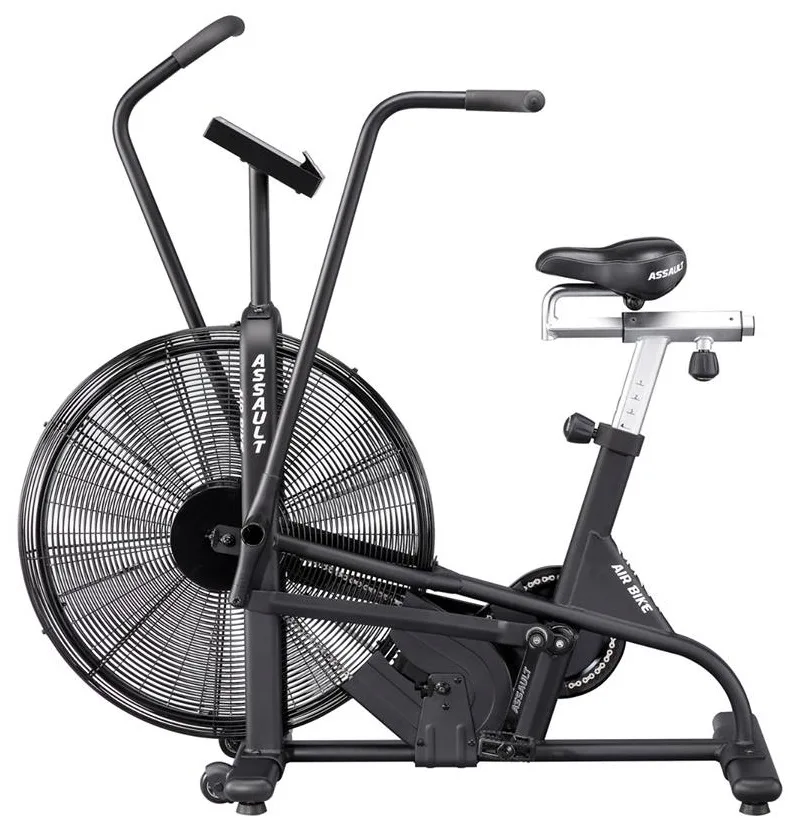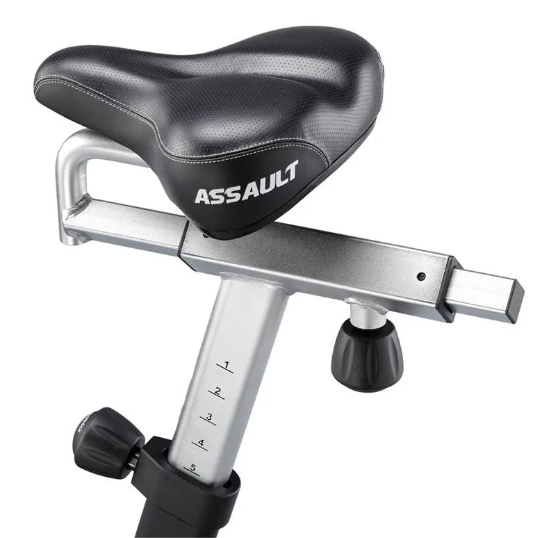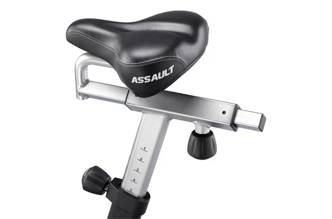ASSAULT AIR BIKE vyniká především svoji ergonomií, mechanikou a vzduchovým odporovým systémem. Trenažér má nastavitelné sedlo v horizontálním i vertikálním směru. Dále disponuje vyrovnávači nerovnosti podlahy a transportními kolečky pro snadnější manipulaci v prostoru.