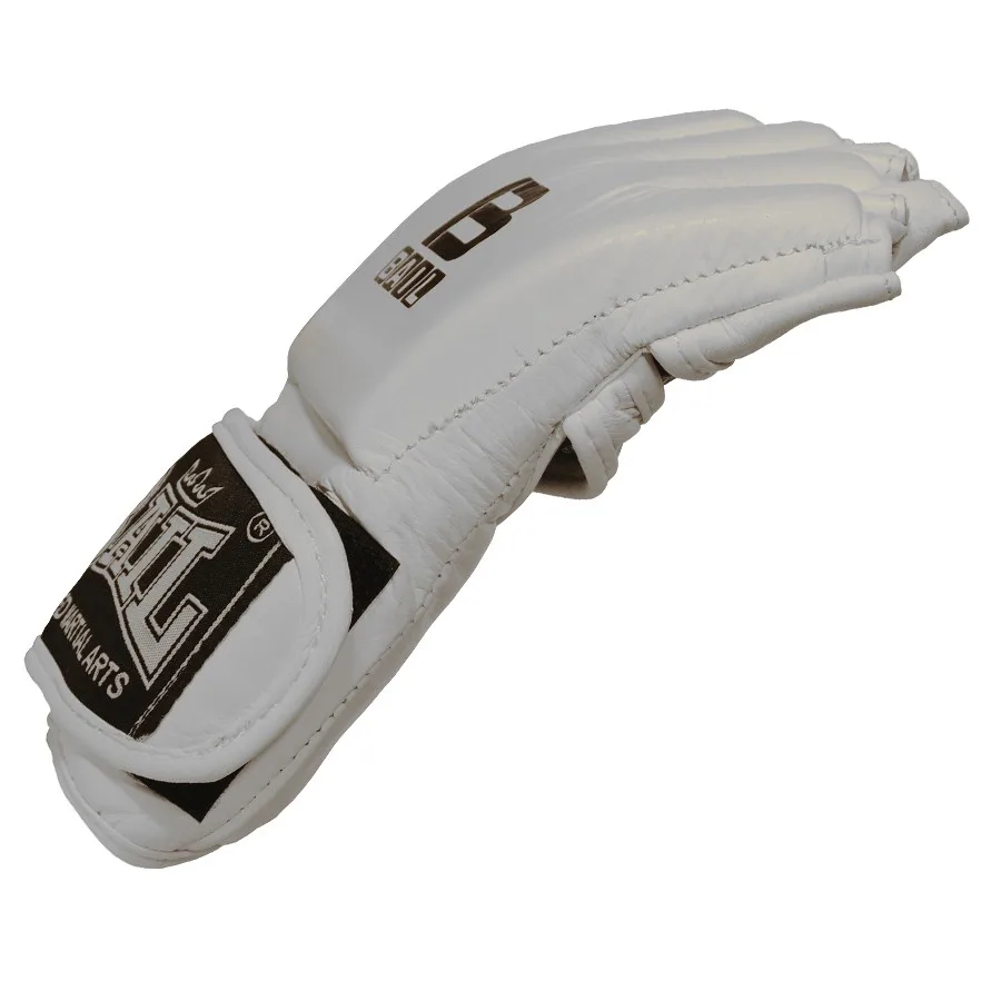 MMA celokožené rukavice s otevřeným palcem jsou určeny jak pro trénink, tak zápas v MMA. Speciálně tvarované vycpávky chrání proti případným zraněním kloubů a prstů. Tvrzené a vytvarované polstrování zajišťuje flexibilitu a nebrání v pohybu. Rukavice mají vyříznutou dlaň, která umožňuje protivníka pevně držet, aniž by ze sevření vyklouzl.