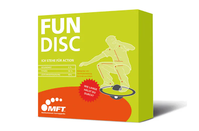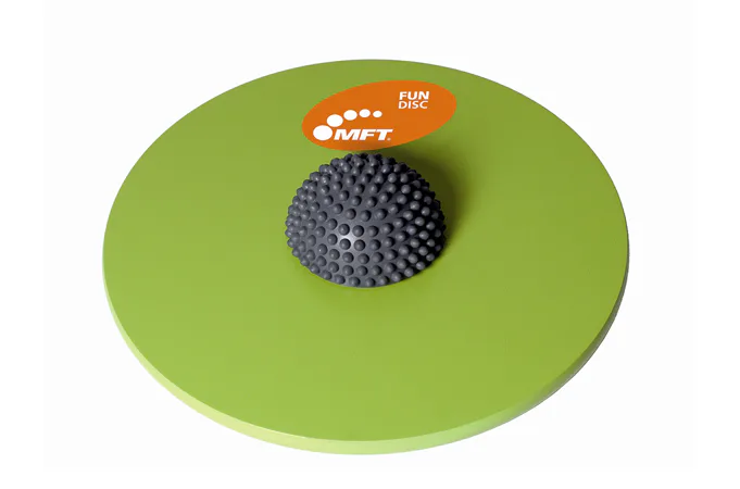 MFT Fun Disc je určen pro děti a začátečníky, napomáhá zlepšení jemné motoriky, stabilizace a koordinačních schopností pohybového aparátu. Tuto balanční desku lze používat oboustranně. V poloze, kdy je ve spodní části šedá úseč koule (ježek), je cvičení náročnější a umožňuje částečnou rotaci. V opačné poloze je cvičení méně náročné, protože rotace je zcela eliminována. Nosnost podložky je 120 kg.