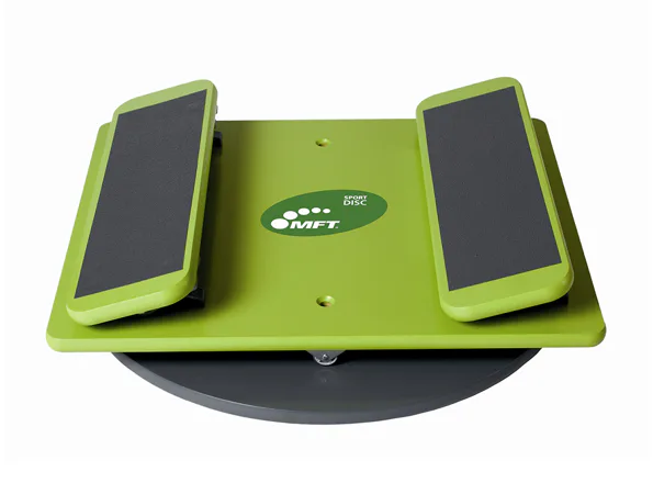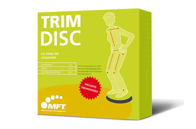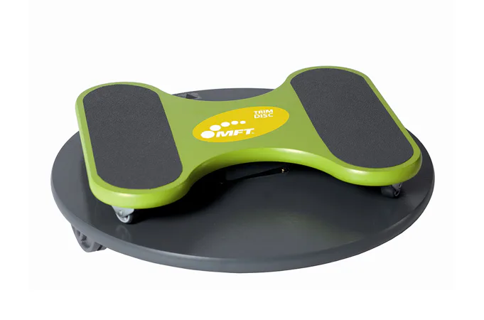 MFT Trim Disc se skládá ze dvou částí, které je možné oddělit. Spodní část je možné po vložení tenisového míčku používat stejně jako Fun Disc. Horní část rotuje okolo vertikální osy a v rozích je podepřena kolečky. Díky otočné konstrukci vedle hlubokých svalů zapojuje také rotátory páteře. Součástí balení je rovněž DVD s ukázkami cviků. Nosnost balanční podložky je 120 kg!