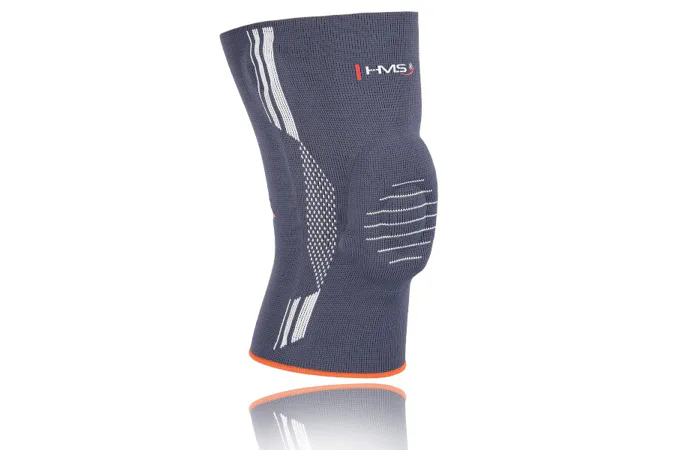 HMS KO1125 je bandáž na koleno s integorvaným silikonovým kroužkem pro stabilizaci čéšky bez omezení hybnosti kolene. Použitý materiál je velmi pružný a dokonale přilne k pokožce a také odvádí vlhkost. V oblasti kolene je bandáž rozšířena pro maximální komfort během pohybu. Silikonový prstenec umístěný v čepičce zaručuje přesné umístění čéšky, její stabilizaci a předchází tak zranění kolene.