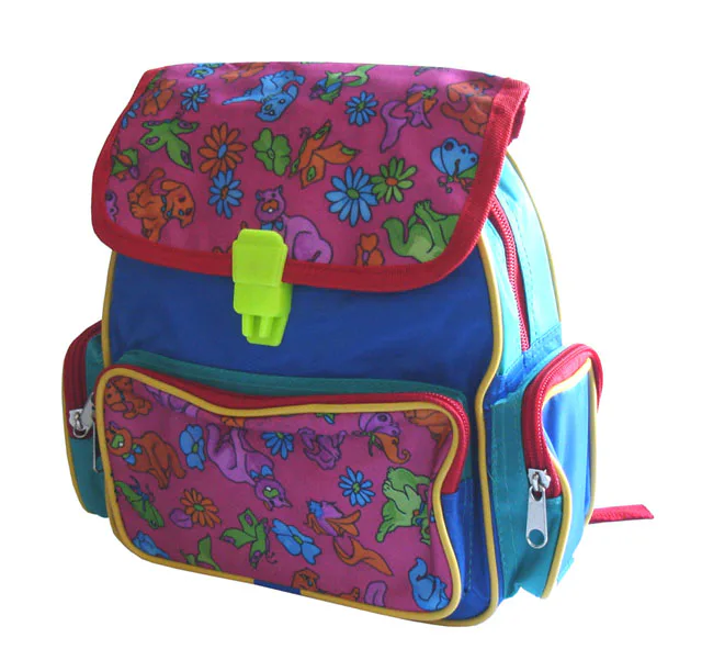 Dětský batůžek barevný s nastavitelnými popruhy. Velká hlavní kapsa a tři menší kapsičky. Batoh je opatřený plastovými přezkami. Batoh má na výšku 24 cm, široký je přibližně 26 cm, včetně bočních kapes. Batoh je ideální pro menší děti na výlety či na zabalení oblíbeného plyšového mazlíčka. Jedná se o batoh za výprodejovou cenu.