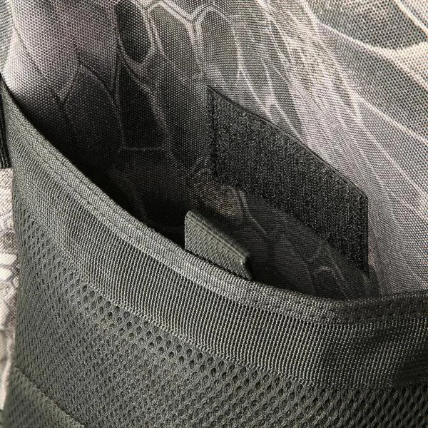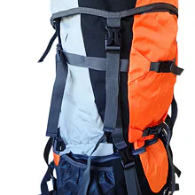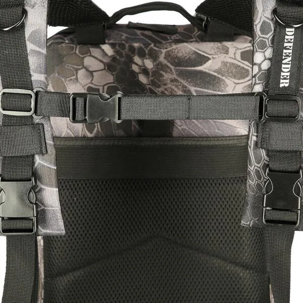 Polstrovaná zadní strana ze síťoviny je vybavena systémem NILS Vent, který zajišťuje cirkulaci vzduchu mezi batohem a zády, tím se snižuje jejich pocení. Pohodlné, polstrované popruhy jsou délkově a výškově nastavitelné. Na horní straně nalezneme pohodlné madlo pro přenášení batohu v ruce. Na batohu se nacházejí 3 kompresní popruhy, jejich stažením lze zmenšit objem zavazadla a zároveň se sníží tlak vyvíjený na švy a zipy v případě, že máme batoh plný. Na svislém kompresním popruhu je očko pro zavěšení příslušenství, jako je například blikačka. Po obvodu batohu se nachází elastická poutka, která lze použít k uchycení příslušenství jako jsou trekingové hole, svítilna, nůž s přezkou... Pro lepší rozložení nosnosti je batoh Defender vybaven hrudním a bederním pásem.