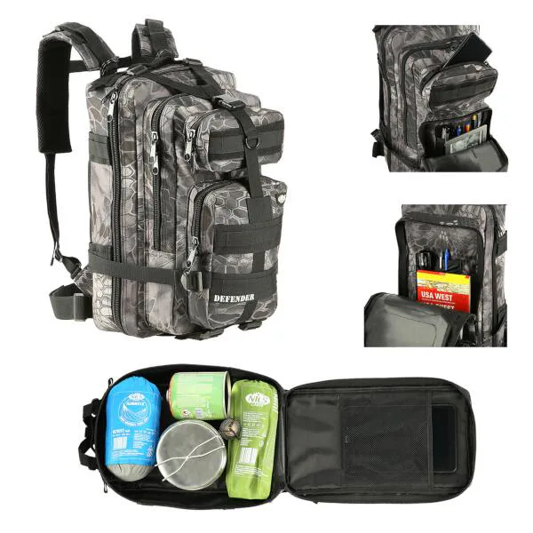 Model Defender má celkem 4 komory o celkovém objemu 30 litrů. Všechny komory jsou opatřeny dvoucestným zipem. Hlavní komora má zip po téměř celém obvodu a je možné ji zcela otevřít pro pohodlný přístup, víko komory je opatřeno síťovinovou kapsou, do které se vejde například tablet. Prostřední komora obsahuje hlavní prostor například pro dokumenty a mapu, na stěně komory jsou dále 2 kapsy například pro tužky, propisky, buzolu nebo svítilnu. Přední, horní komora je určena na menší předměty jako je například powerbanka, nebo mobilní telefon. Přední dolní komora nabízí krom hlavního prostoru také další řadu kapsiček na drobnosti. Na zadní straně se nachází ještě jedna plochá kapsa na suchý zip.
