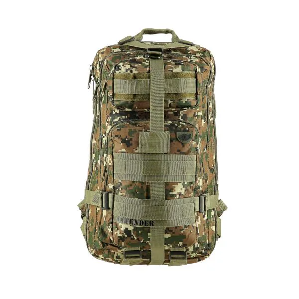 Model Defender má celkem 4 komory o celkovém objemu 30 litrů. Všechny komory jsou opatřeny dvoucestným zipem. Hlavní komora má zip po téměř celém obvodu a je možné ji zcela otevřít pro pohodlný přístup, víko komory je opatřeno síťovinovou kapsou, do které se vejde například tablet. Prostřední komora obsahuje hlavní prostor například pro dokumenty a mapu, na stěně komory jsou dále 2 kapsy například pro tužky, propisky, buzolu nebo svítilnu. Přední, horní komora je určena na menší předměty jako je například powerbanka, nebo mobilní telefon. Přední dolní komora nabízí krom hlavního prostoru také další řadu kapsiček na drobnosti. Na zadní straně se nachází ještě jedna plochá kapsa na suchý zip.