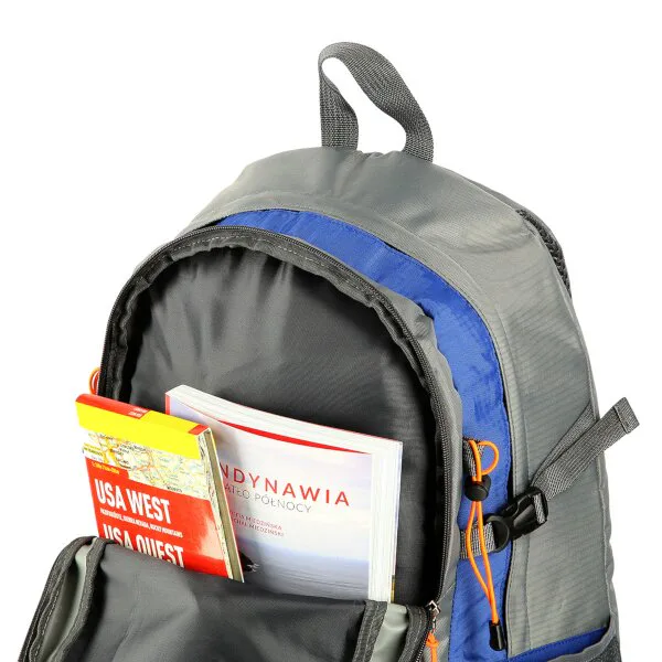 Přední komora je určena na menší předměty jako je například peněženka nebo mobilní telefon. Po stranách batohu se nachází 2 přihrádky ze síťoviny, které pojmou například láhev s vodou, delší předměty lze dodatečně zafixovat popruhy s přezkou. Poutka po stranách slouží k uchycení turistických holí. Poslední 2 kapsičky na zip se nachází na bederním popruhu a lze je využít například na mince, nebo klíče od domu.