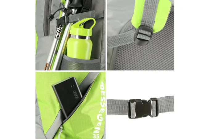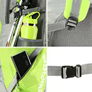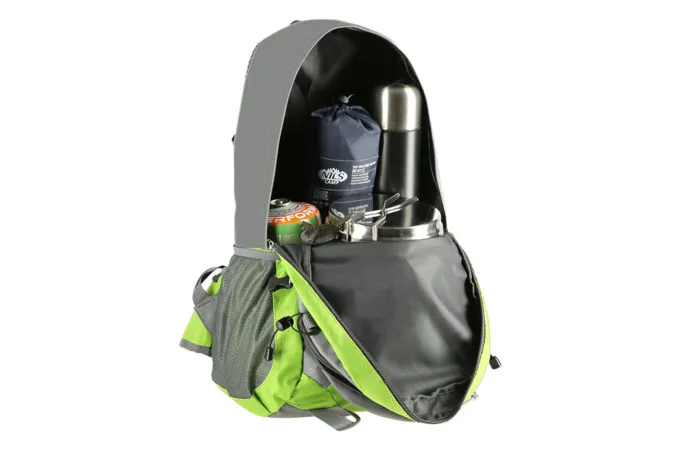Přední komora je určena na menší předměty jako je například peněženka nebo mobilní telefon. Po stranách batohu se nachází 2 přihrádky ze síťoviny, které pojmou například láhev s vodou, delší předměty lze dodatečně zafixovat popruhy s přezkou. Poutka po stranách slouží k uchycení turistických holí. Poslední 2 kapsičky na zip se nachází na bederním popruhu a lze je využít například na mince, nebo klíče od domu.