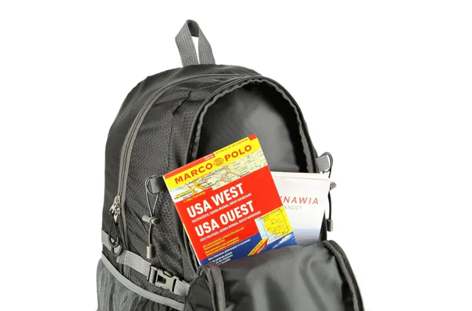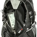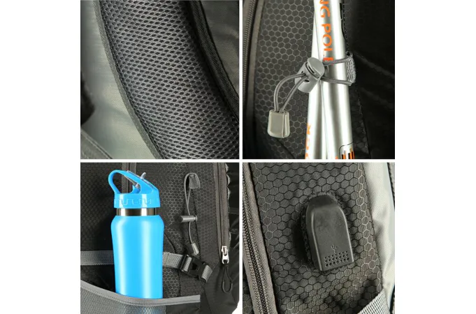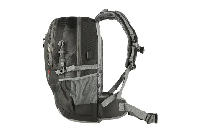Přední komora je určena na menší předměty jako je například peněženka, nebo mobilní telefon. Po stranách batohu se nachází ještě 2 síťované přihrádky, které pojmou například láhev s vodou, delší předměty lze dodatečně zafixovat popruhy s přezkou. Na vnější straně hlavní komory nalezneme USB konektror, který lze uvnitř komory připojit k powerbance. Poutka po stranách slouží k uchycení turistických holí. Na přední kapse nalezneme reflexní štítek, který zvyšuje bezpečnost za šera.