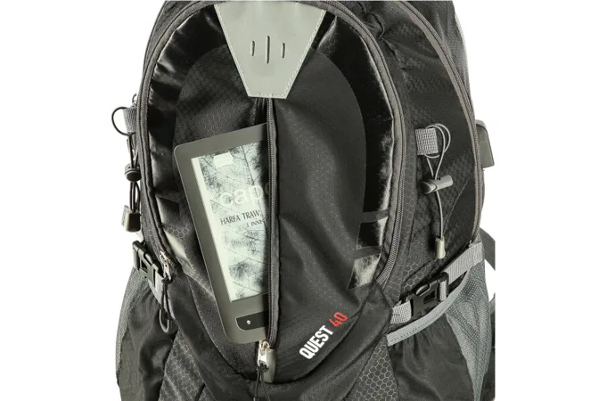 Model Quest má celkem 3 komory o celkovém objemu 40 litrů. Velká, hlavní komora se otevírá pomocí dvoucestného zipu, prostor je dostatečně velký pro uložení všech věcí potřebných například k celodennímu výletu s dětmi. Do prostřední komory se vejdou dokumenty a složky do formátu A4.