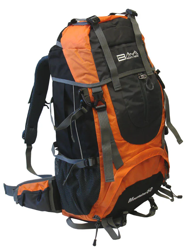 Batoh pro horskou turistiku se zpevněným zádovým systém, pevnou konstrukcí a perfektní ventilací ACRA BA 60l. Bederní pás s maximálním obvodem 130 cm a hrudní pás, velké množství upínacích pásků na různé předměty (trekingové hole, boty, cepín...).
