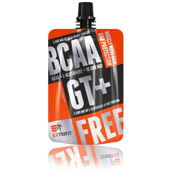 BCAA GT + je jedinečný produkt od firmy Extrifit®, ktorý Vám prináša veľmi silnú dávku vetvených aminokyselín (BCAA) a glutamínu v novej gélovej forme, ktorá zabezpečuje rýchlu stráviteľnosť a ideálne vstrebateľnosť, čo je pre anabolický, antikatabolický a regeneračný účinok voľných aminokyselín zásadný. Jedno balenie BCAA GT + obsahuje celých 5 000 mg glutamínu a 5 000 mg voľných vetvených aminokyselín (BCAA) a je dostupné v 2 skvelých príchutiach. Nemusíte nič odmeriavať, odsypávať, hľadať zdroj vody a nosiť objemné nádoby a krabičky. Vždy pri sebe máte jednu presne dávkovanú porciu BCAA a glutamínu v kompaktnom balení!