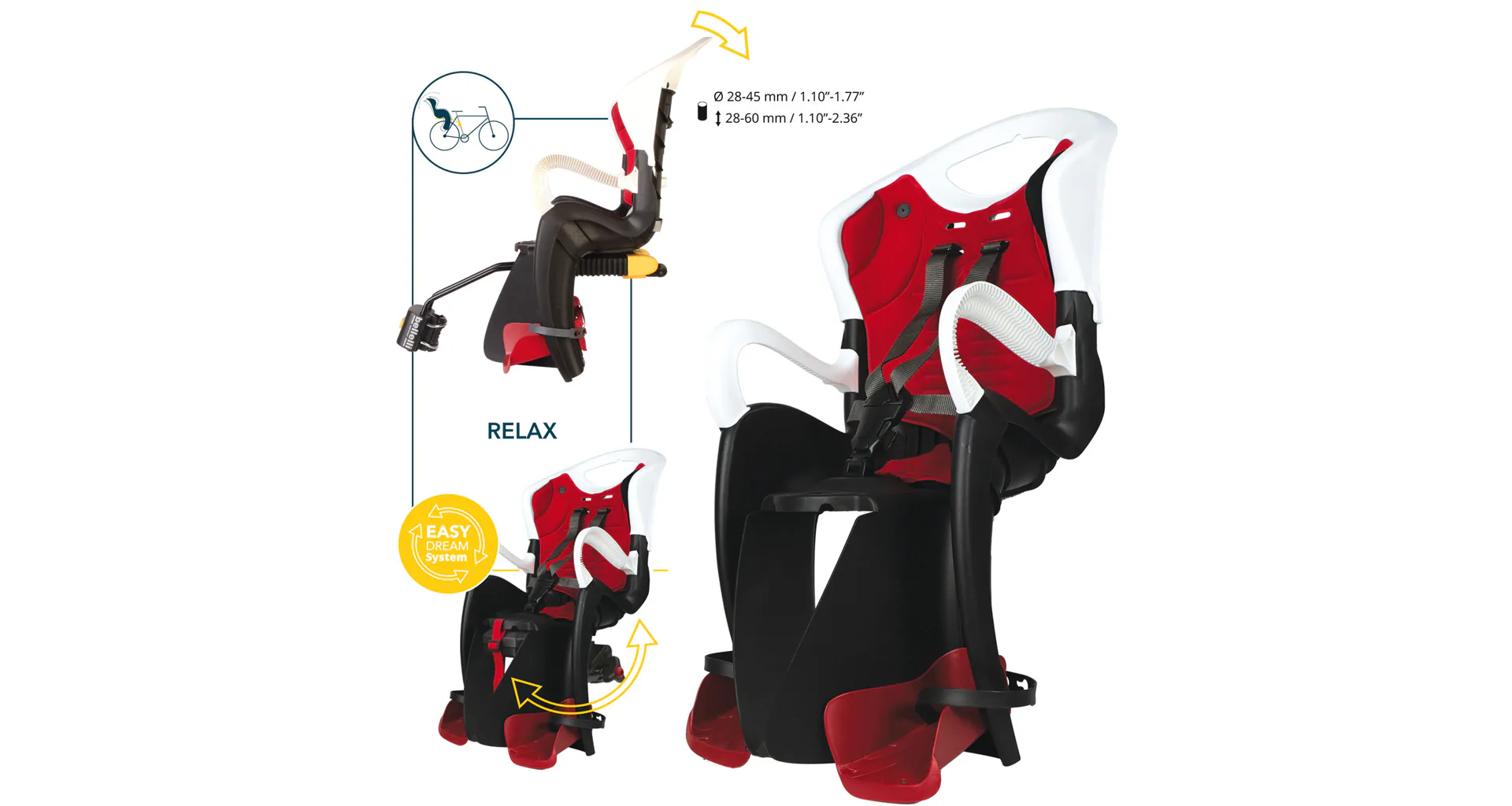 Špičková dětská sedačka BELLELLI TIGER Relax s upínáním na zadní část rámu kola pod sedlo systémem B-Fix, je kvalitní model s velkými větracími otvory a vysokými bočnicemi na držení dětí. Plastový skelet ze zdravotně nezávadného materiálu vyplněný měkkou omyvatelnou vložkou pro pohodlné sezení.