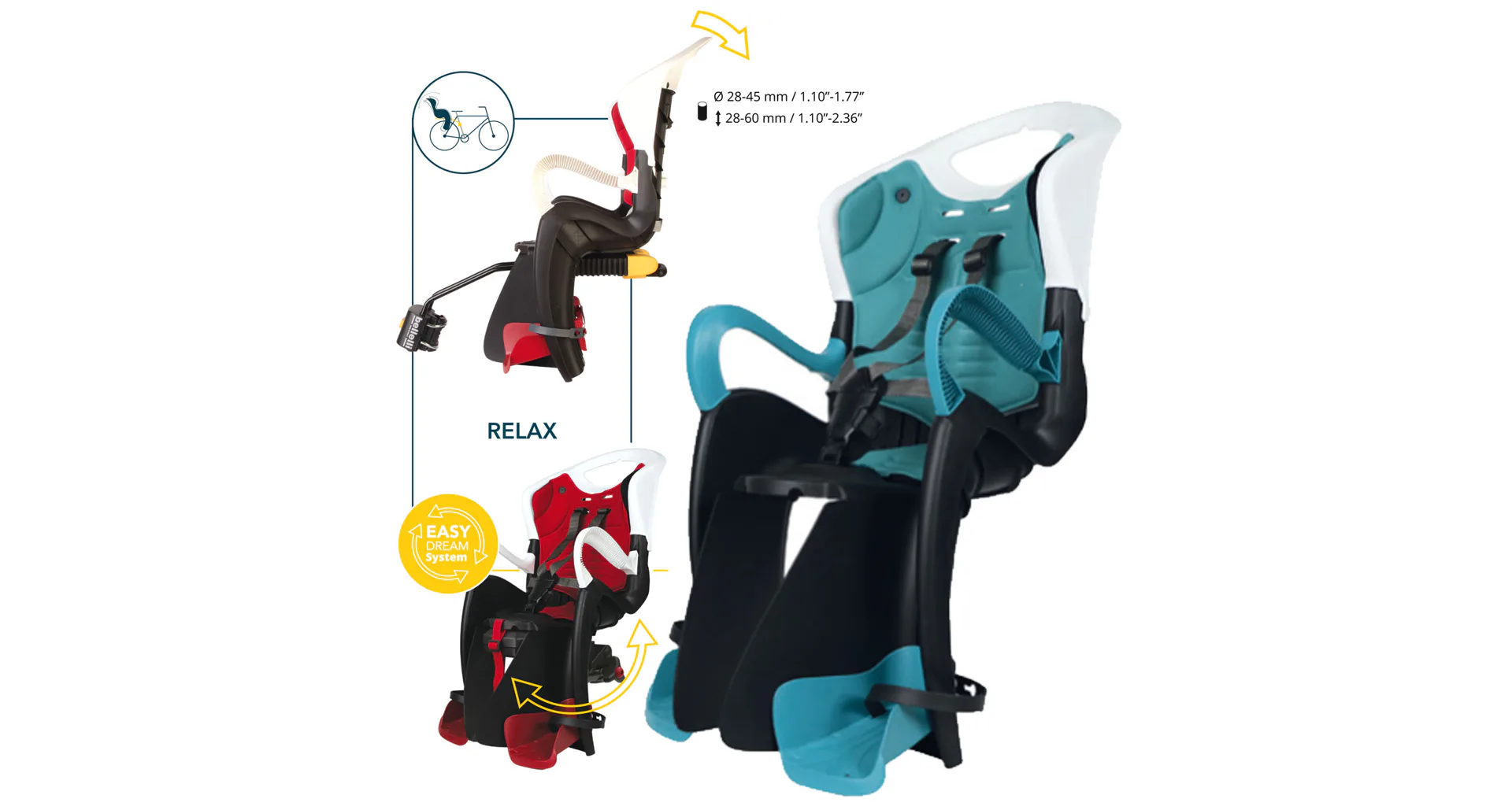 Špičková dětská sedačka BELLELLI TIGER Relax s upínáním na zadní část rámu kola pod sedlo systémem B-Fix, je kvalitní model s velkými větracími otvory a vysokými bočnicemi na držení dětí. Plastový skelet ze zdravotně nezávadného materiálu vyplněný měkkou omyvatelnou vložkou pro pohodlné sezení.