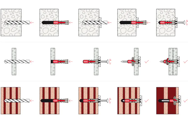 Upevnění do různých materiálů: