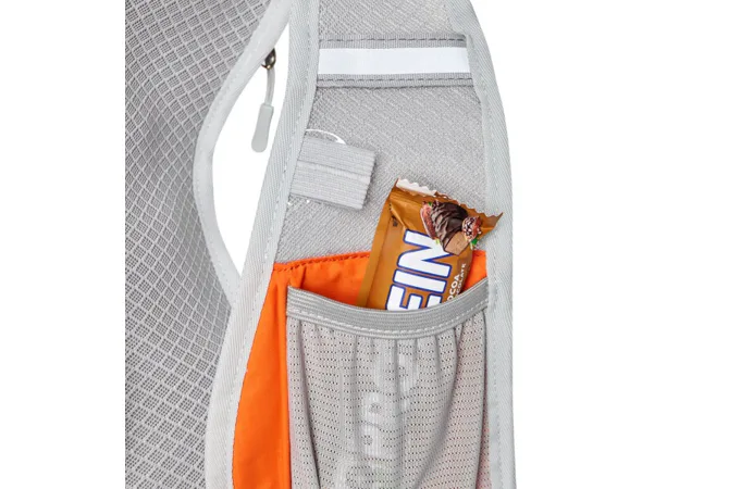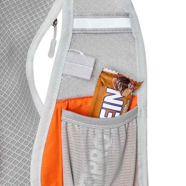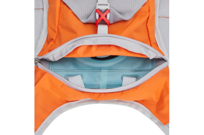 Hlavní komora batohu je opatřena přepážkou, v horní části se nachází poutko s karabinou, na které visí oddělitelný vak, do kterého lze batoh složit a můžete jej mít jako záložní batoh ve svém hlavním zavazadle. Vedle poutka nalezneme 2 suché zipy pro zavěšení hydrovaku (není součástí dodávky). Hadičku hydrovaku lze vyvést průvlaky na pravé i na levé straně pod ramenními panely. Přední síťovaná kapsa se uzavírá na přezku. Síťovina je podšitá nylonem, takže kapsa není elastická. Pod kapsou je reflexní panel, ke kterému si můžeme pomocí řemínku připnout vybavení (například helmu).
