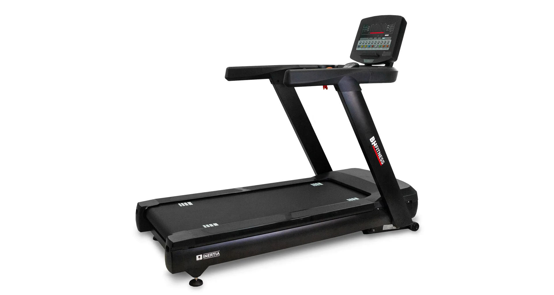 Běžecký pás BH Fitness INERTIA G688 LED disponuje moderním počítačem s Bluetooth a snadným ovladáním, držáky na lahve, senzory pro měření tepové frekvence a transportními kolečky.