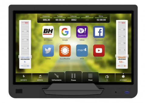 Běžecký pás BH Fitness INERTIA G688 SmartFocus 19" disponuje moderním počítačem s 19" dotykovým displejem a snadným ovladáním, držáky na lahve, senzory pro měření tepové frekvence a transportními kolečky.