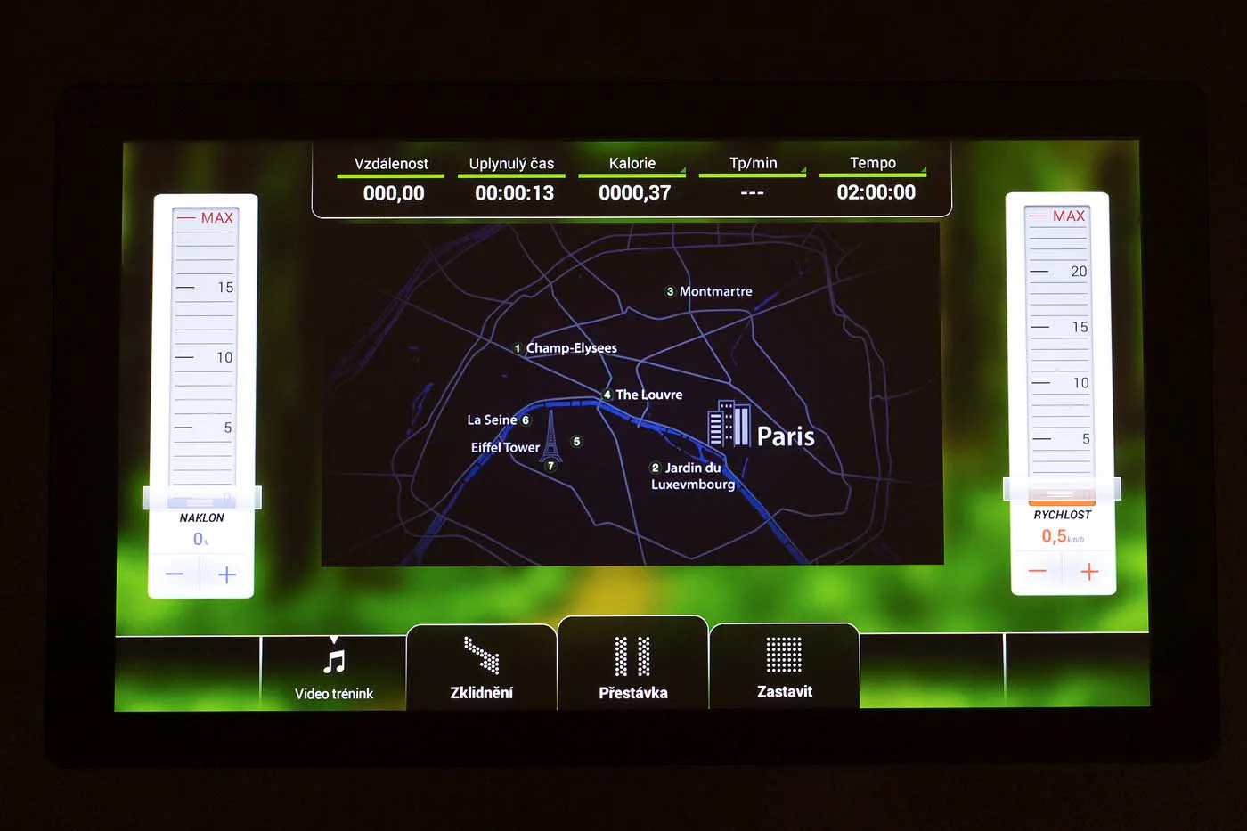 Díky střídavému AC motoru s maximálním výkonem 8 HP (trvalý výkon 4,5 HP), který je určen do komerčního provozu, umožňuje stroj dlouhodobě využívat rychlost v rozmezí 0,8 - 24 km/h při sklonu do 15 %. Prostorná, odpružená běžecká plocha má rozměry 58 x 160 cm.