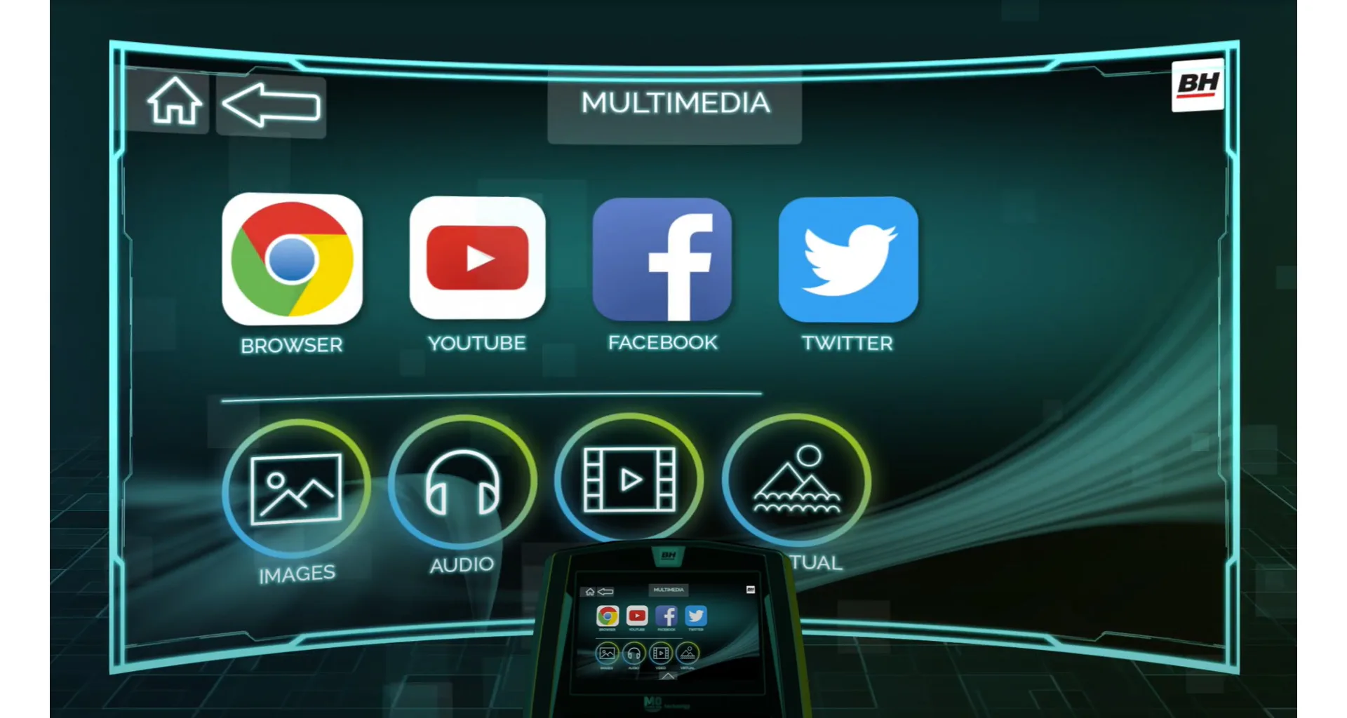 K dispozici máte komfortní dotykové TFT rozhraní s multimébii (YuiTube, prohlížeč ...) možností nastavení několika uživatelů, jejich dat, 36 přednastavených programů, HRC programy řízené tepem a uživatelsky nastavitelný program.