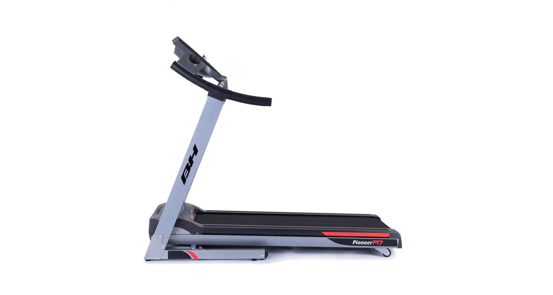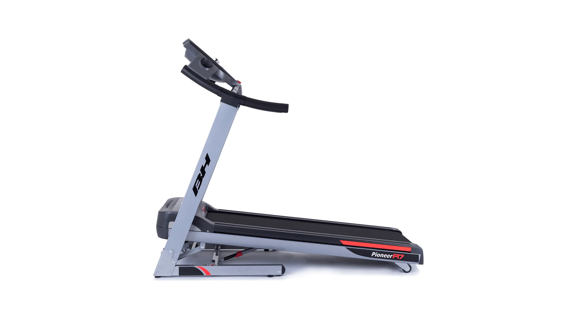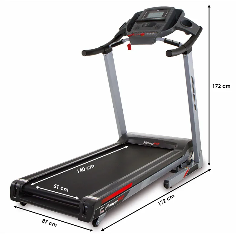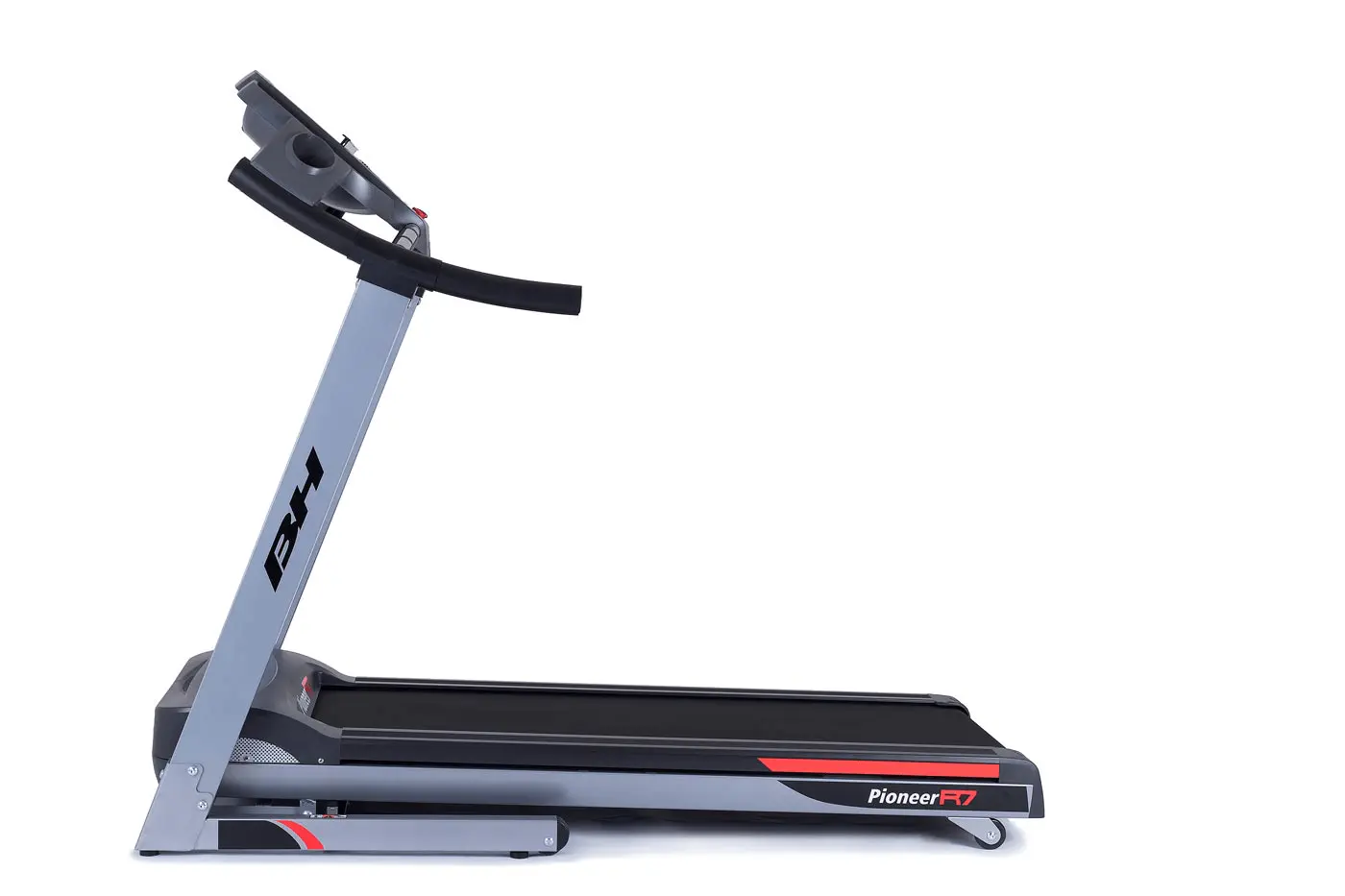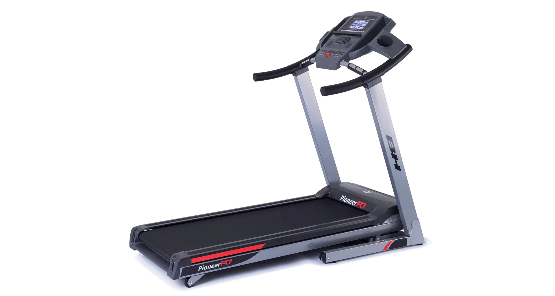 Běžecký pás BH Fitness PIONEER R7 disponuje počítačem s LCD displejem, držákem na lahev, senzory pro měření tepové frekvence a transportními kolečky. Po tréninku stroj snadno a rychle složíte.