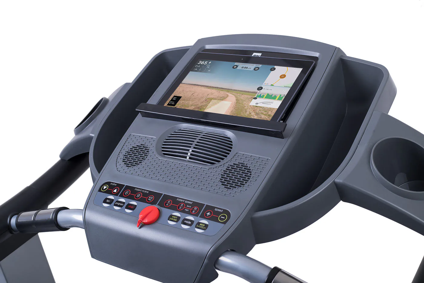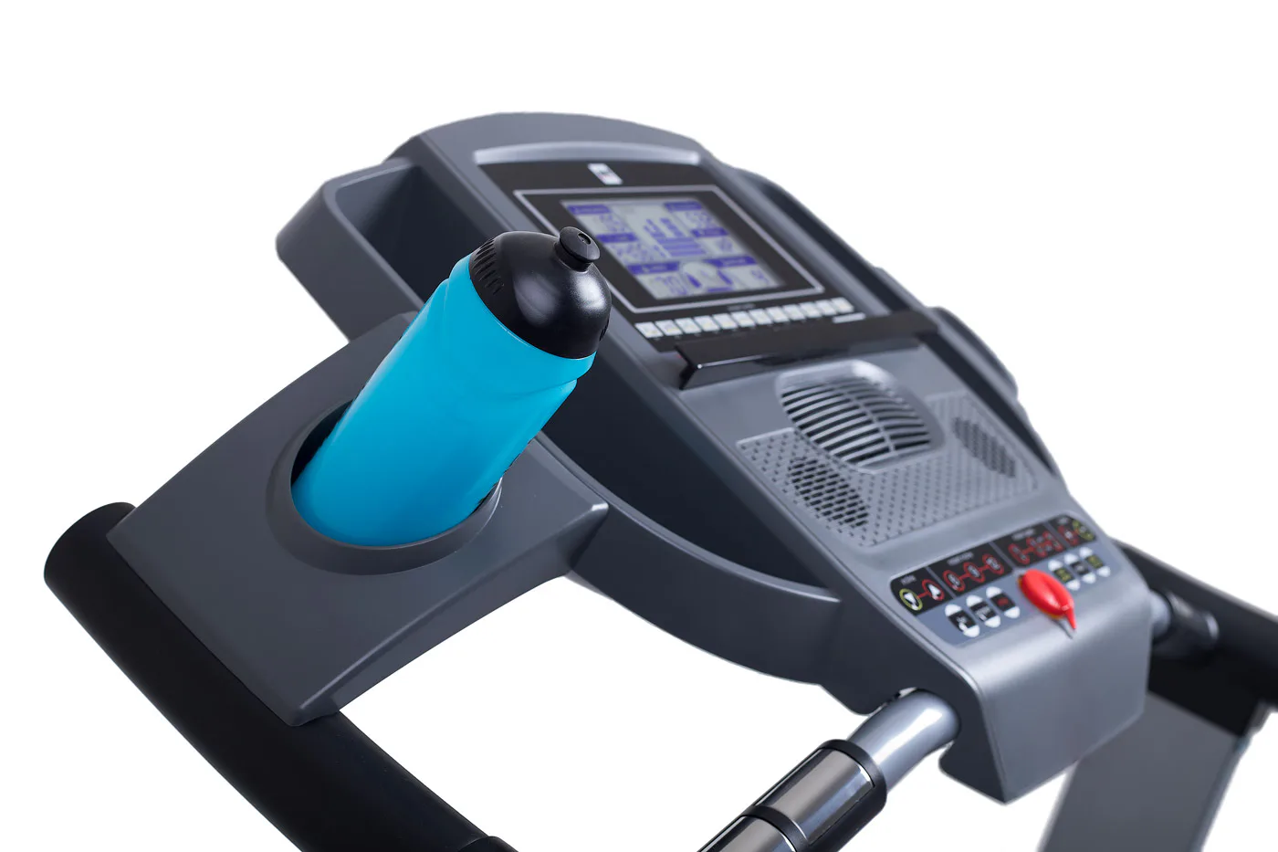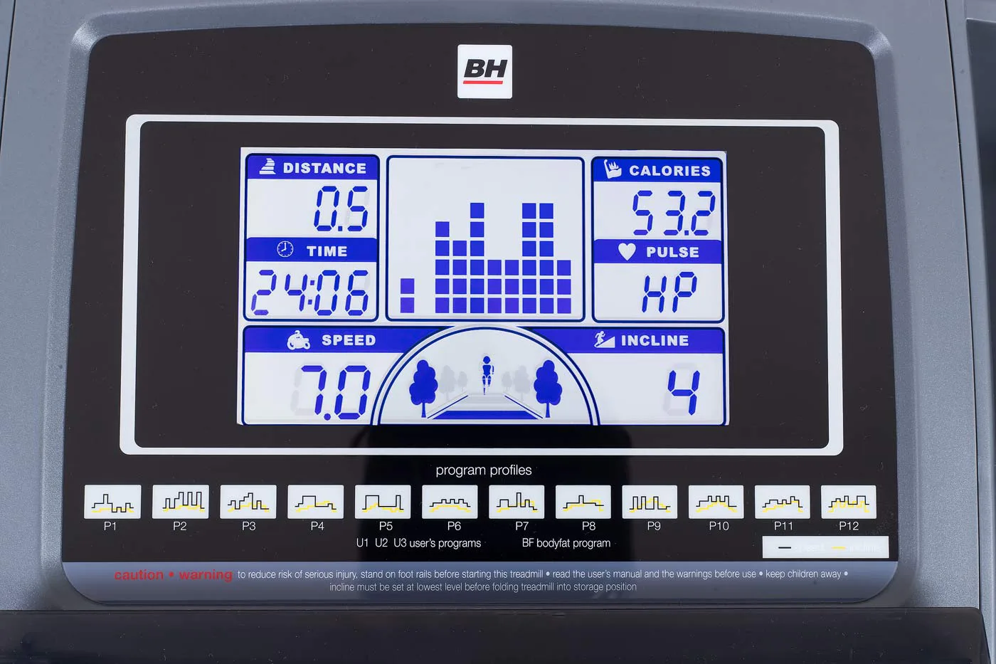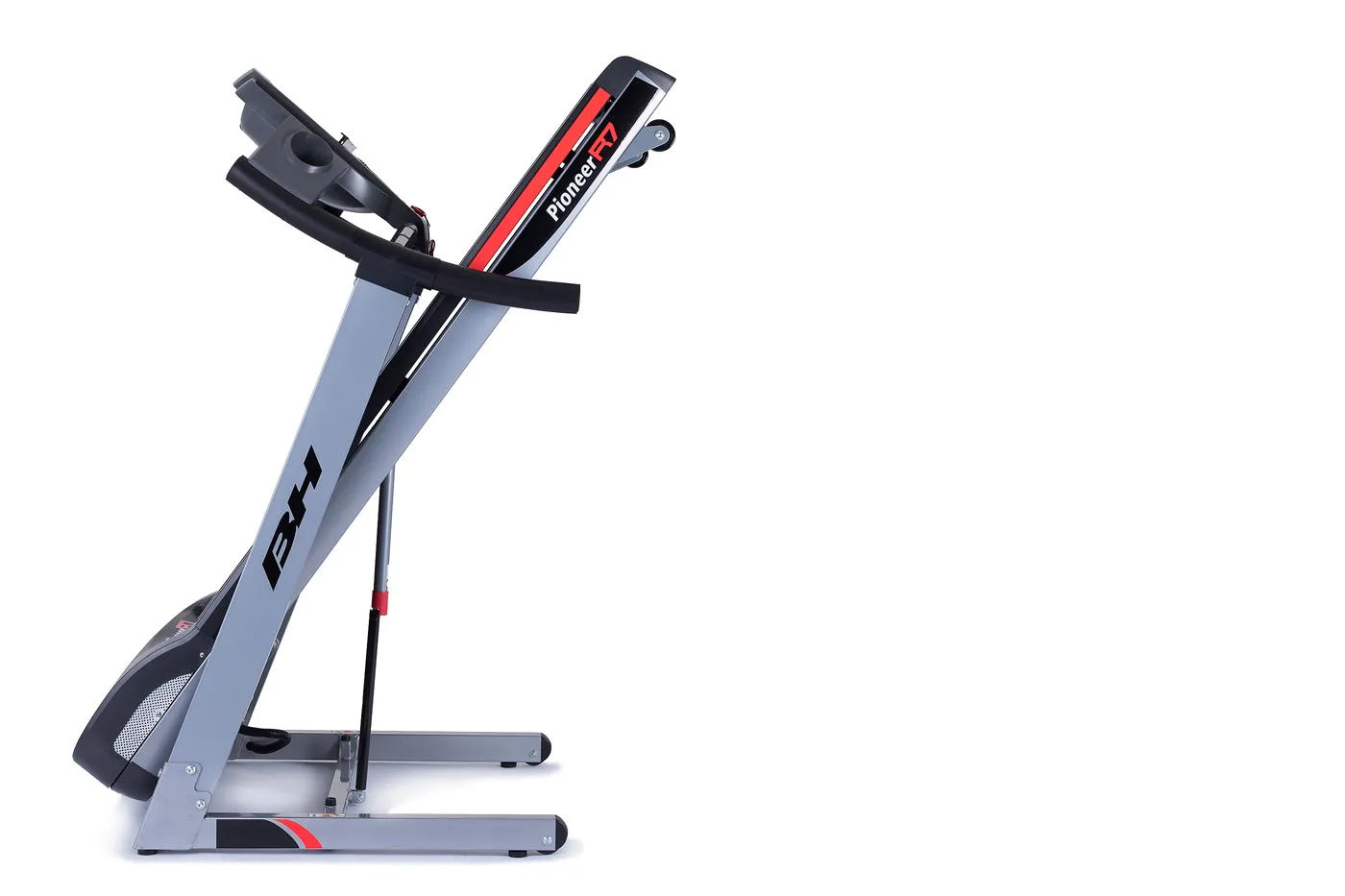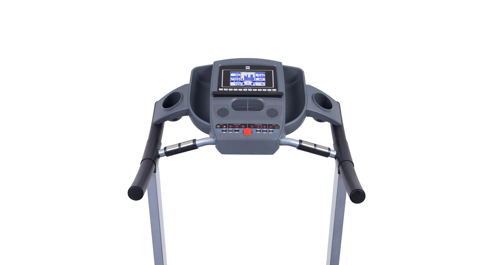 Běžecký pás BH Fitness PIONEER R7 disponuje počítačem s LCD displejem, držákem na lahev, senzory pro měření tepové frekvence a transportními kolečky. Po tréninku stroj snadno a rychle složíte.