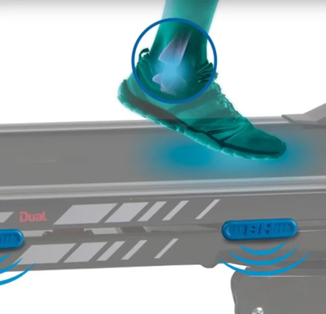 Trenažér má kvalitní a výkonný motor s maximálním výkonem 3,5 HP (2,57 kW) a trvalým výkonem 2,0 HP (1,47 kW). Prostorná běžecká plocha s rozměry 50 x 140 cm je vybavena kvalitním tlumícím systémem SDS (Soft Drop systém) s 6 elastomery a Run +.