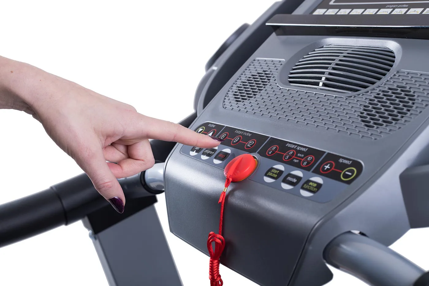 Sklon je elektronicky nastavitelný do 12 %. Můžete tak dokonale simulovat běhání do kopce a využívat i přednastavené programy, které s touto funkcí pracuje.