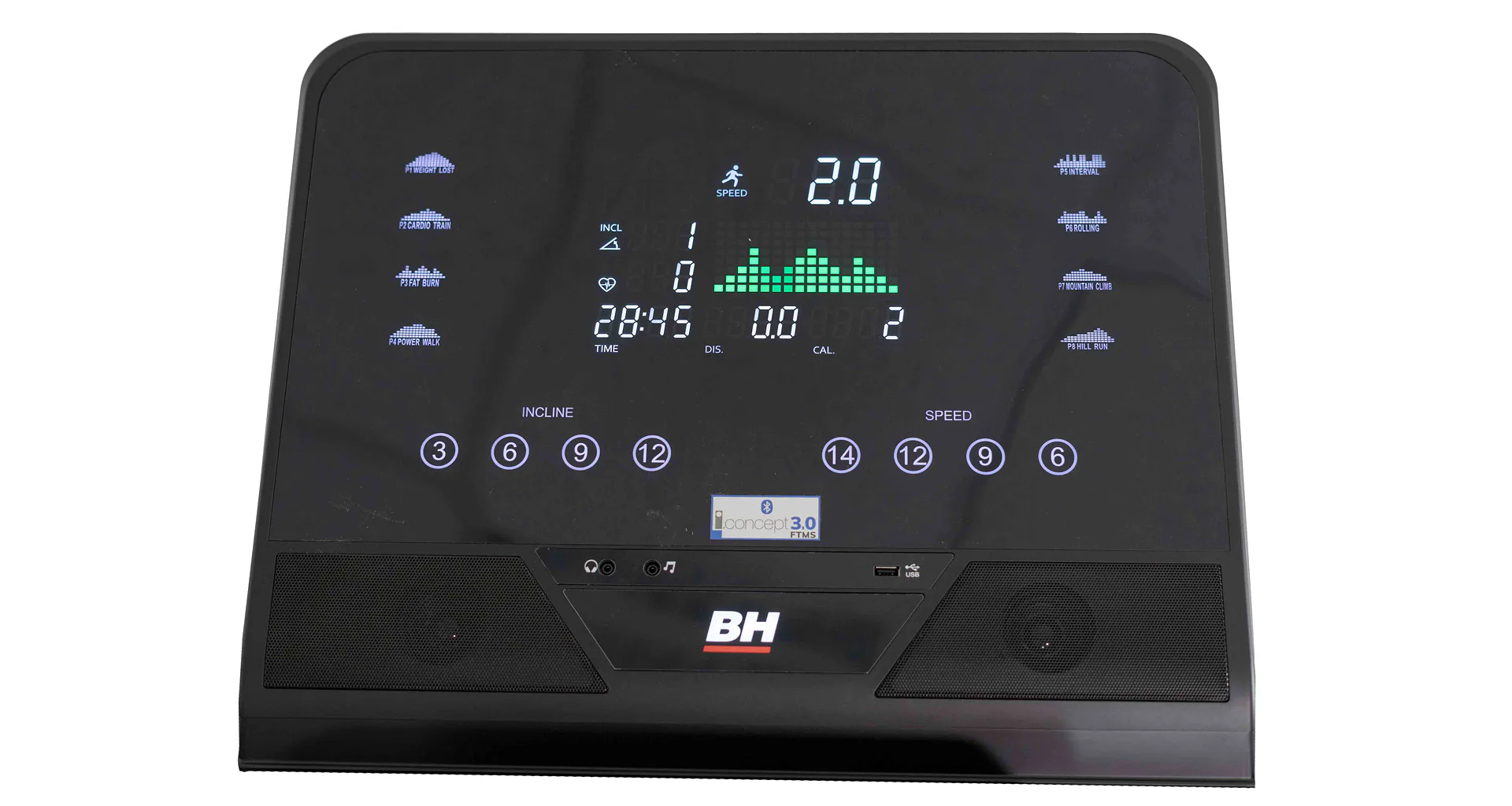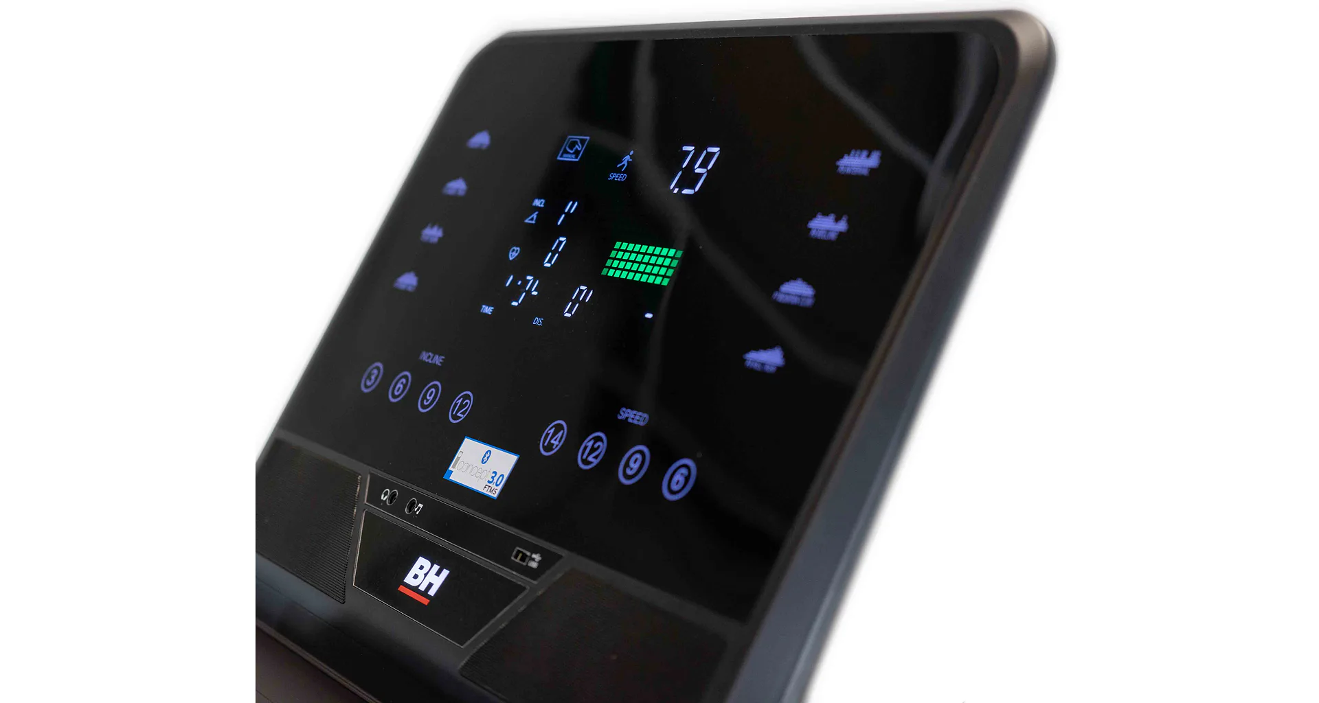 Běžecký pás BH Fitness RS1200 disponuje snadno ovladatelným počítačem s velkým přehledným LED DOT-Matrix displejem.