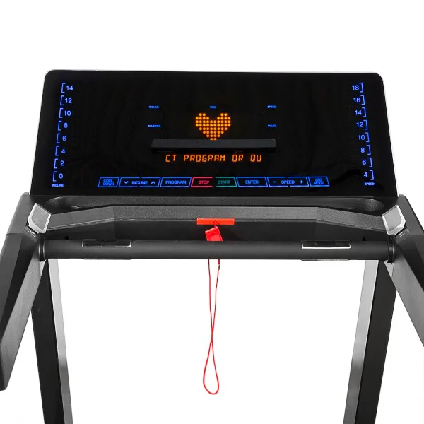 Ovládací konzole je vybavena 2-mi madly pro rychlý úchop, 2-mi madly s elektrodami pro snímání tepové frekvence, prostorem pro odložení láhve, stojánkem pro mobilní telefon nebo tablet, klávesnicí a monitorem. Klávesnice je vybavena tlačítky Start, Stop, Program, Enter. Dále se zde nachází tlačítka pro plynulou změnu rychlosti a skokovou změnu rychlosti na 4, 6, 8, 10, 12, 14, 16, nebo 18 km/h a dále tlačítka pro plynulou změnu úhlu běžecké plochy a tlačítka pro skokovou změnu úhlu na 0, 2, 4, 6, 8, 10, 12 nebo 14°. Počítač trenažéru BE1862 je vybaven LCD monitorem, který zobrazuje veškeré informace (čas tréninku, rychlost, úhel, vzdálenost, spálené kalorie a tepovou frekvenci). Pro trénink je k dispozici 20 pevných a 4 uživatelsky definované programy. Jeden z vestavěných programů je navržen pro starší cvičence, kdy trenažér mění rychlost běhounu a sklon naprosto plynule. Běžeckou plochu trenažéru je možné zvednout a ušetřit tak drahocené místo, když zrovna netrénujete. Moderní design trenažéru je podtrhnut LED pásky, které osvětlují běžeckou plochu.