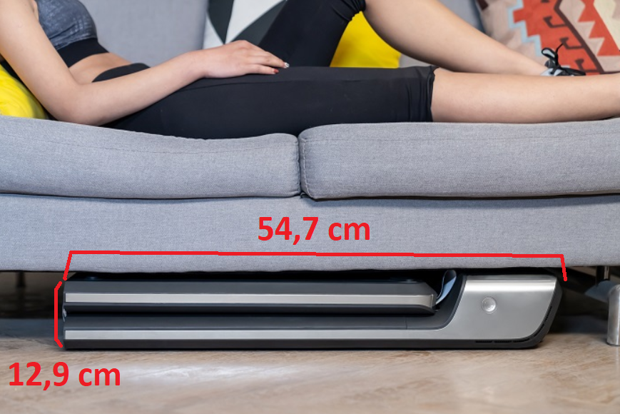 Běžecký pás je vybaven LED displejem, bluetooth zařízením pro připojení aplikace WalkingPad a transportními kolečky. Po dokončení chůze můžete pás složit a uložit.