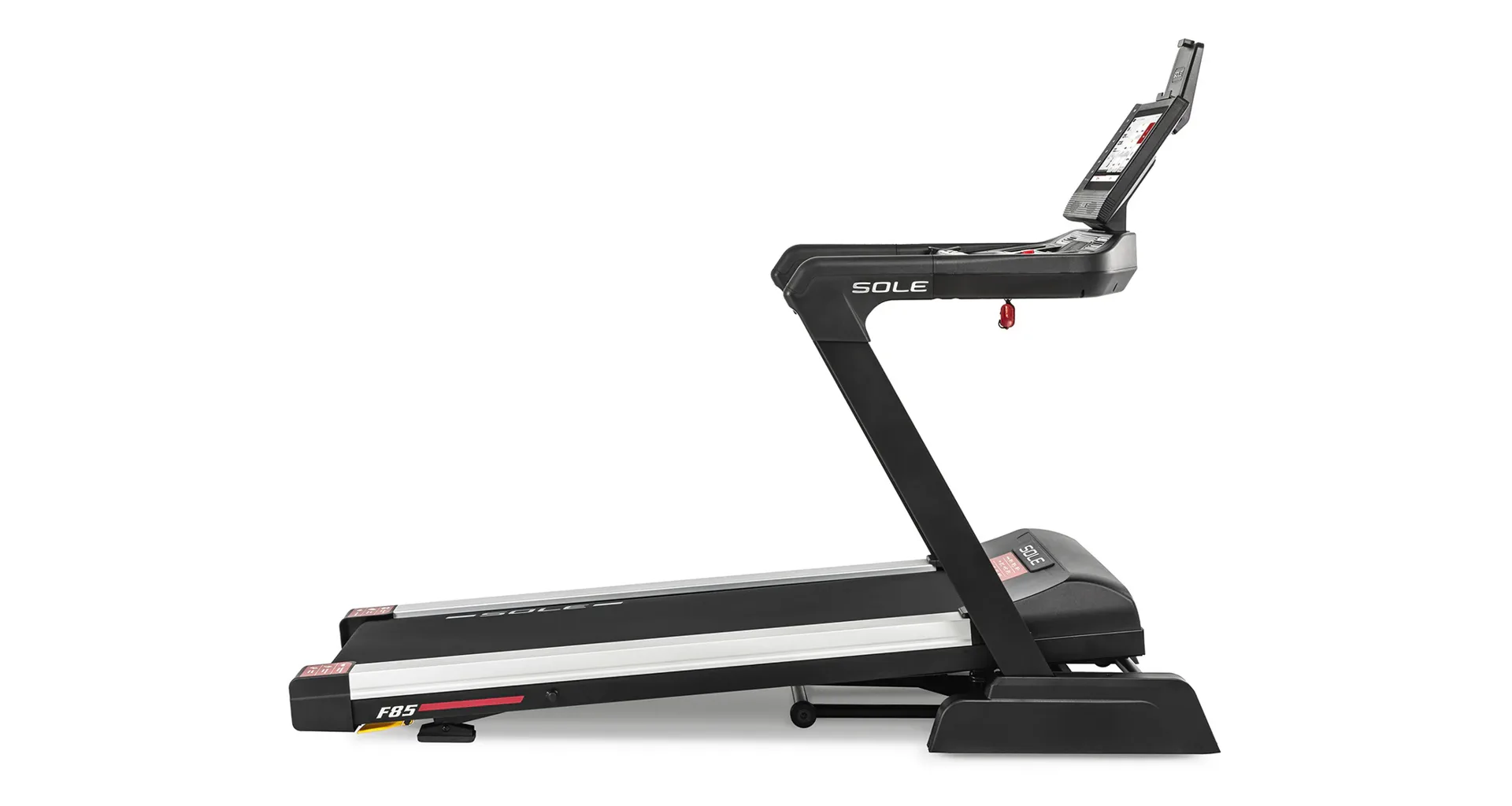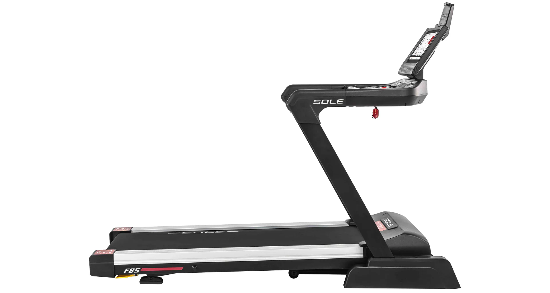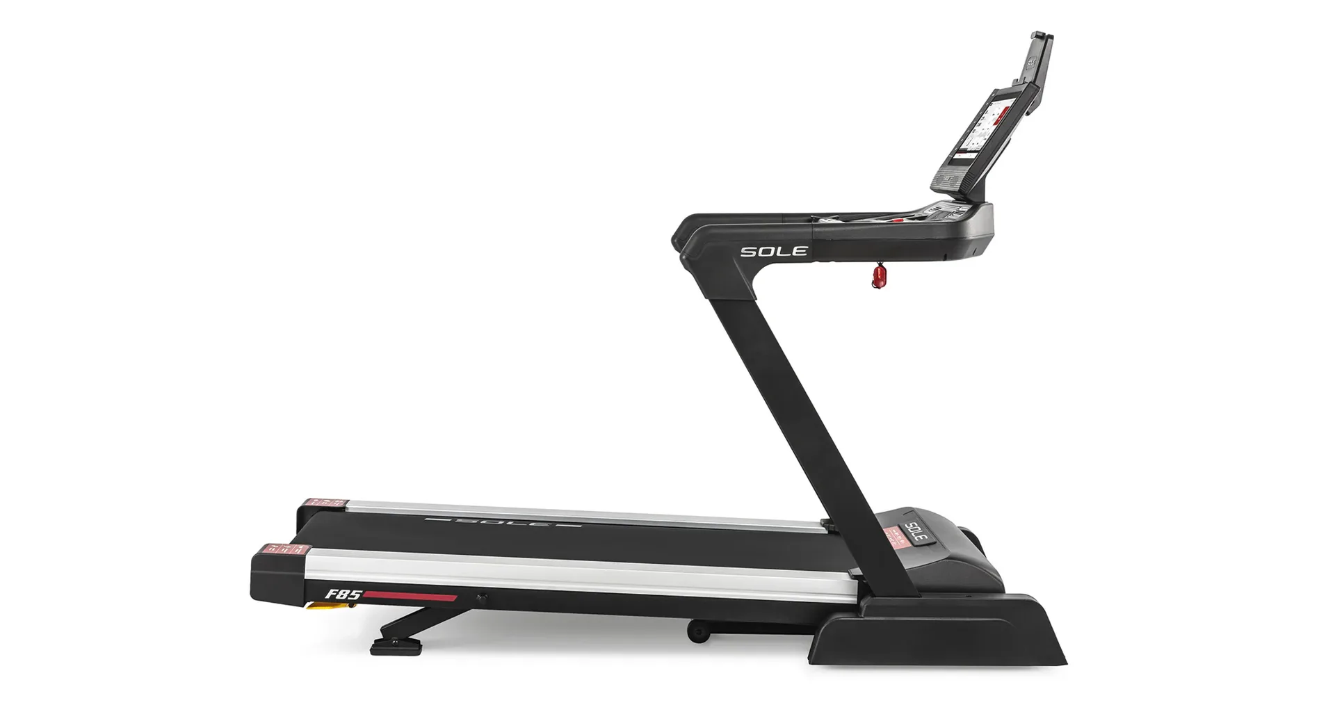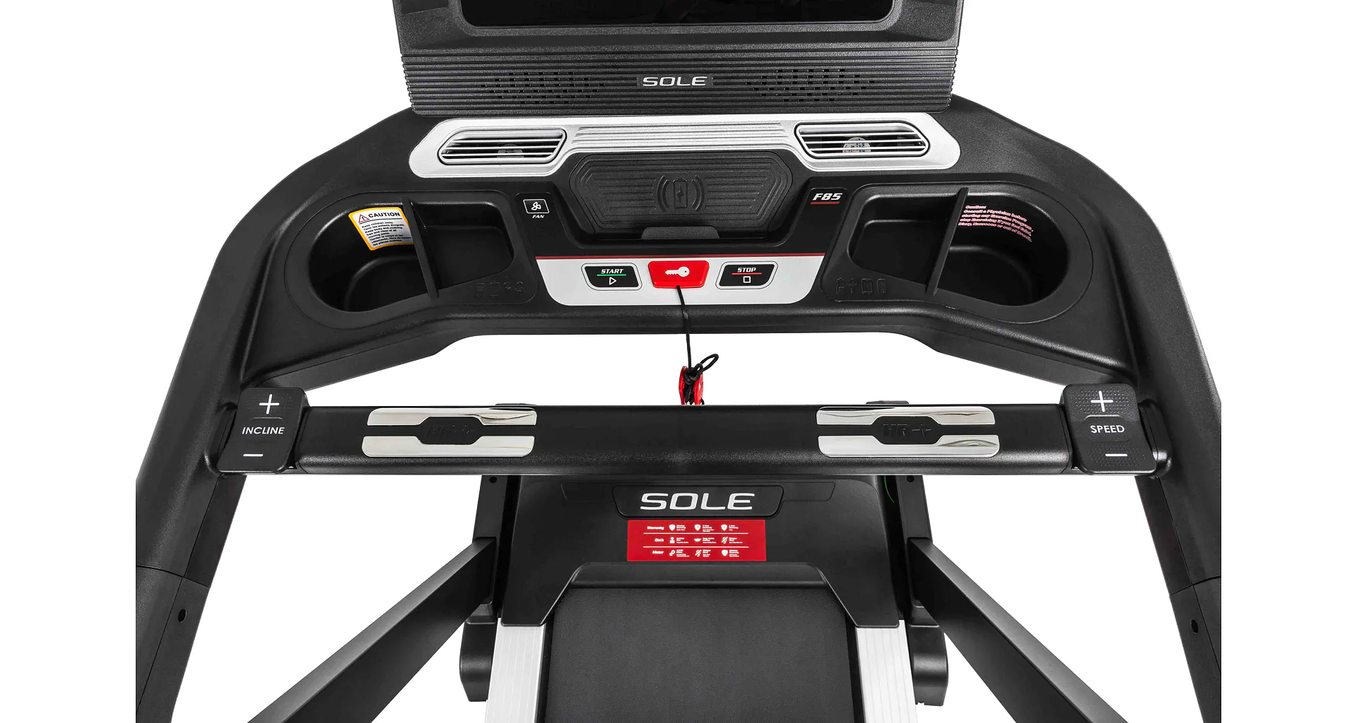HAMMER SOLE F85 je vystrojen přehledým počítačem s 15,6" TFT dotykovým displejem, který nabízí 12 přednastavených programů a HRC programy. Měření tepové frekvence je možné prostřednictvím senzorů na madlech nebo bezdrátově 5 kHz hrudním pásem. Pro zpestření vašeho tréninku můžete běžecký pás přes Bluetooth připojit k tréninkovým aplikacím Kinomap a Zwift a udělat tak váš trénink pestřejší a zábavnější. Aplikace automaticky přizpůsobuje odpor a nastavuje sklon dle vybrané tratě. Nedílnou součástí počítače je i držák na tablet/smartphone, USB port pro nabíjení, reproduktory.