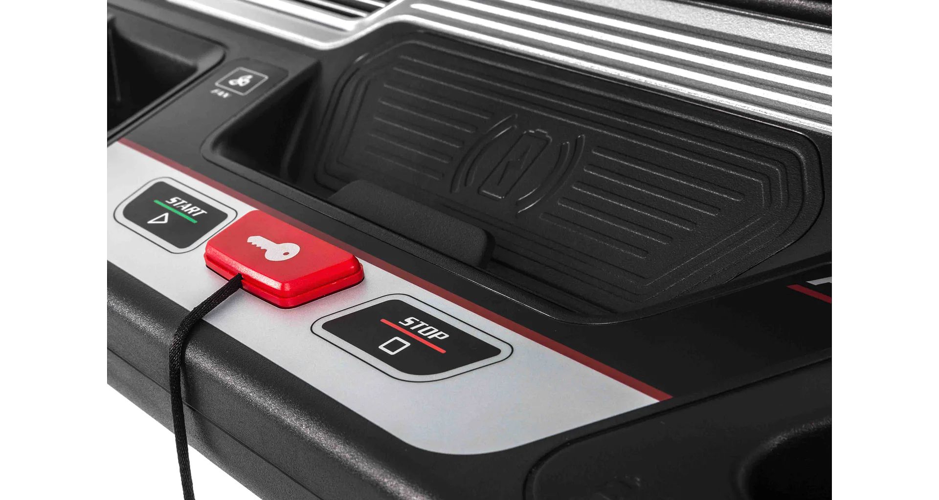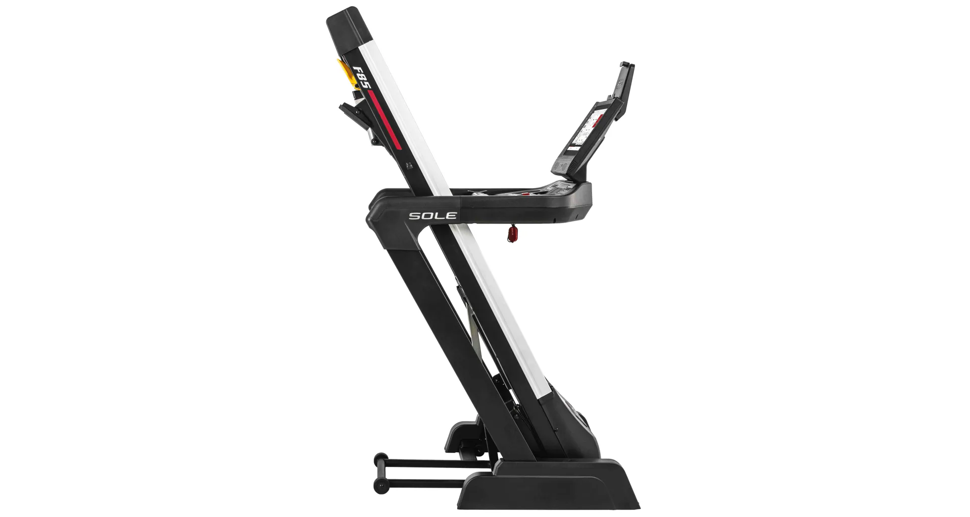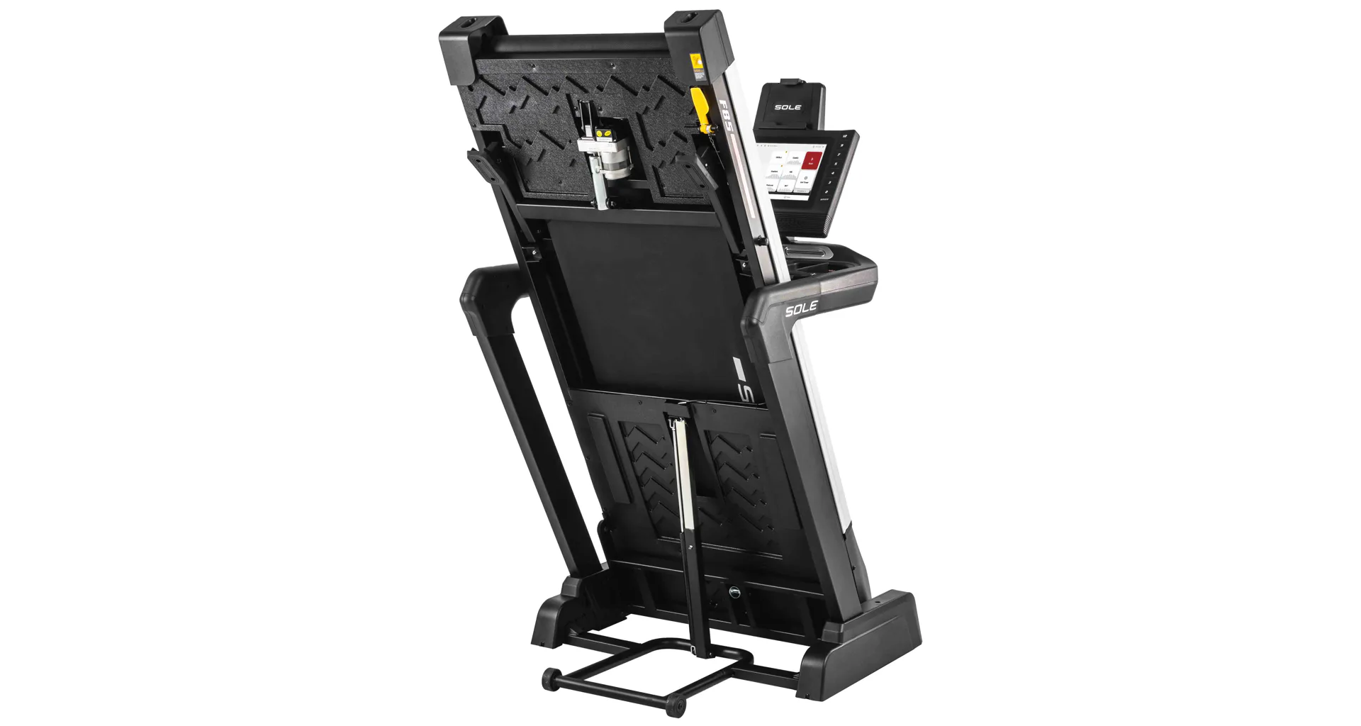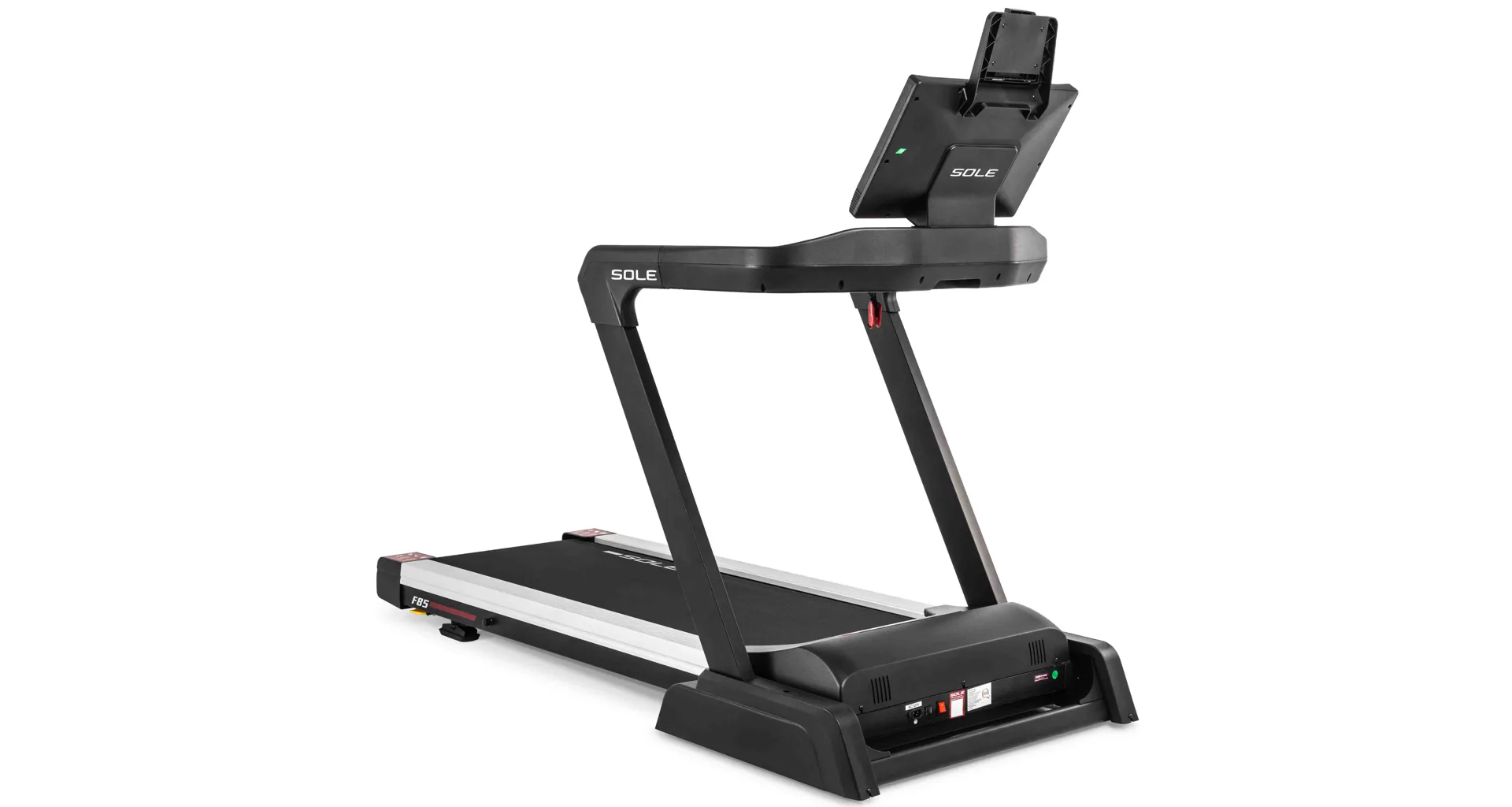 HAMMER SOLE F85 je vystrojen přehledým počítačem s 15,6" TFT dotykovým displejem, který nabízí 12 přednastavených programů a HRC programy. Měření tepové frekvence je možné prostřednictvím senzorů na madlech nebo bezdrátově 5 kHz hrudním pásem. Pro zpestření vašeho tréninku můžete běžecký pás přes Bluetooth připojit k tréninkovým aplikacím Kinomap a Zwift a udělat tak váš trénink pestřejší a zábavnější. Aplikace automaticky přizpůsobuje odpor a nastavuje sklon dle vybrané tratě. Nedílnou součástí počítače je i držák na tablet/smartphone, USB port pro nabíjení, reproduktory.