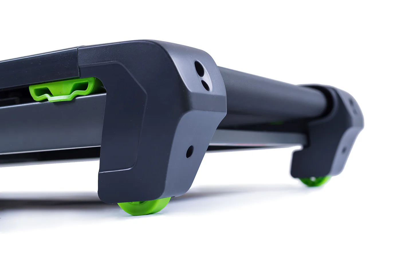 Součástí výbavy jsou i integrovaná transportní kolečka. Můžete tak běžecký trenažér jednoduše přemístit kamkoliv potřebujete.