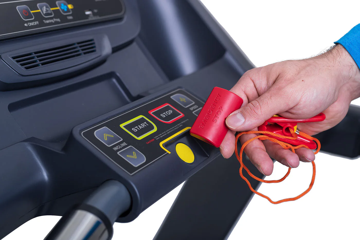 Součástí pásu je i bezpečnostní stop-pojistka, která v případě uklouznutí apod. trenažér okamžitě zastaví.