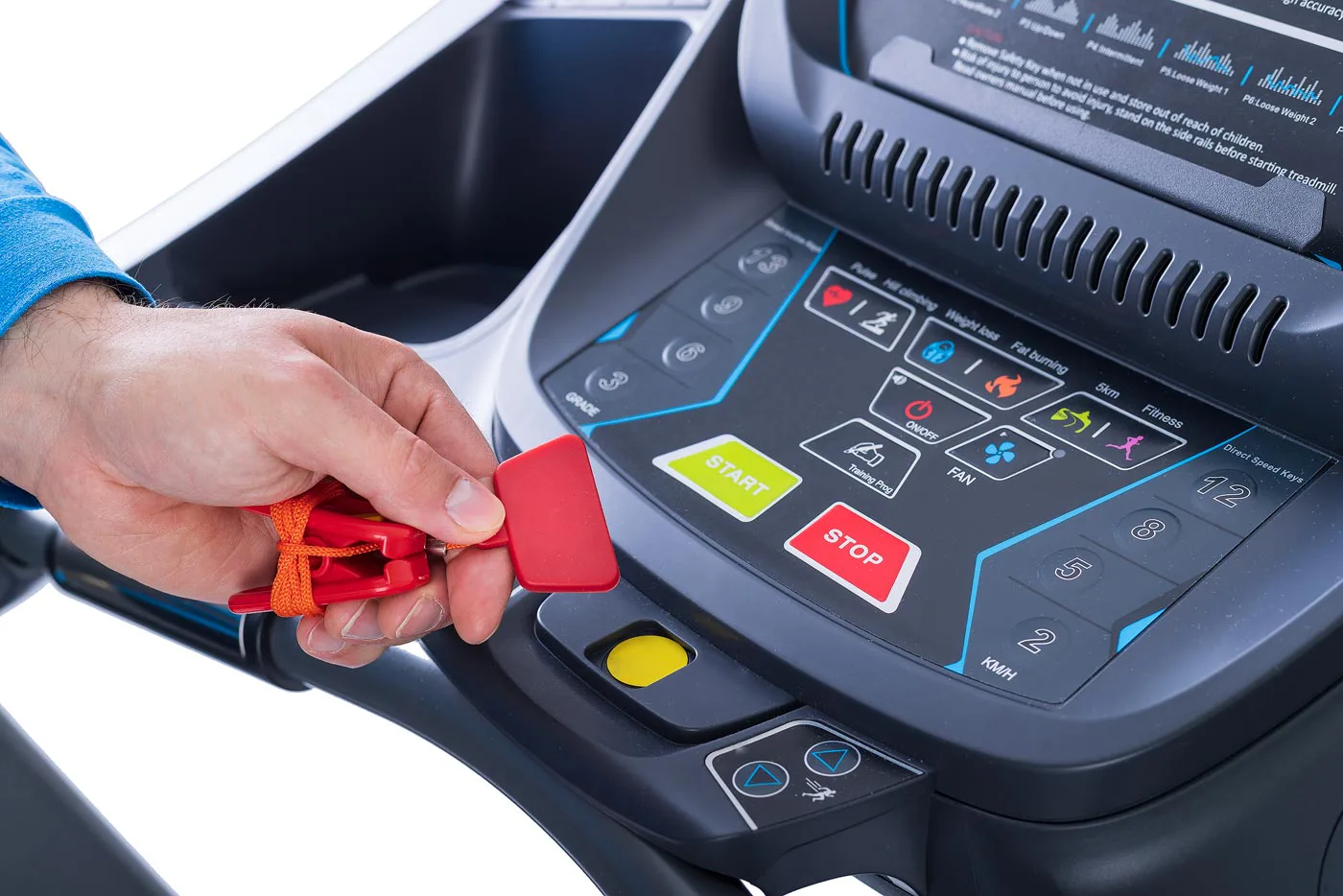 Součástí pásu je i bezpečnostní stop-pojistka, která v případě uklouznutí apod. trenažér okamžitě zastaví.